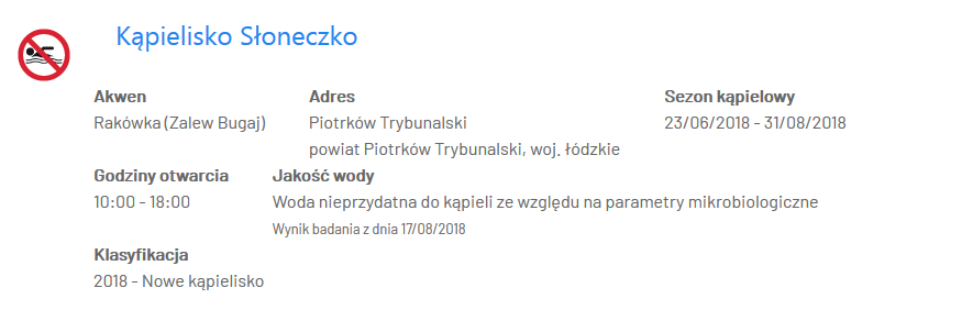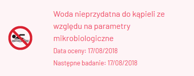 Ostatnia próba wody przeprowadzona była w poniedziałek 13 sierpnia, i jak się okazało, to wyjątkowo pechowy dzień dla zarządcy obiektu. Jak czytamy na stronie Serwisu Kąpieliskowego, „wywieszona jest czerwona flaga, a woda nie nadaje się do kąpieli”.