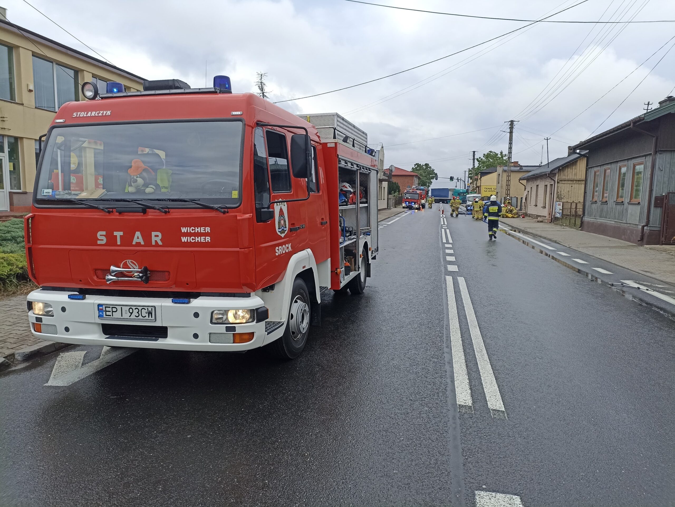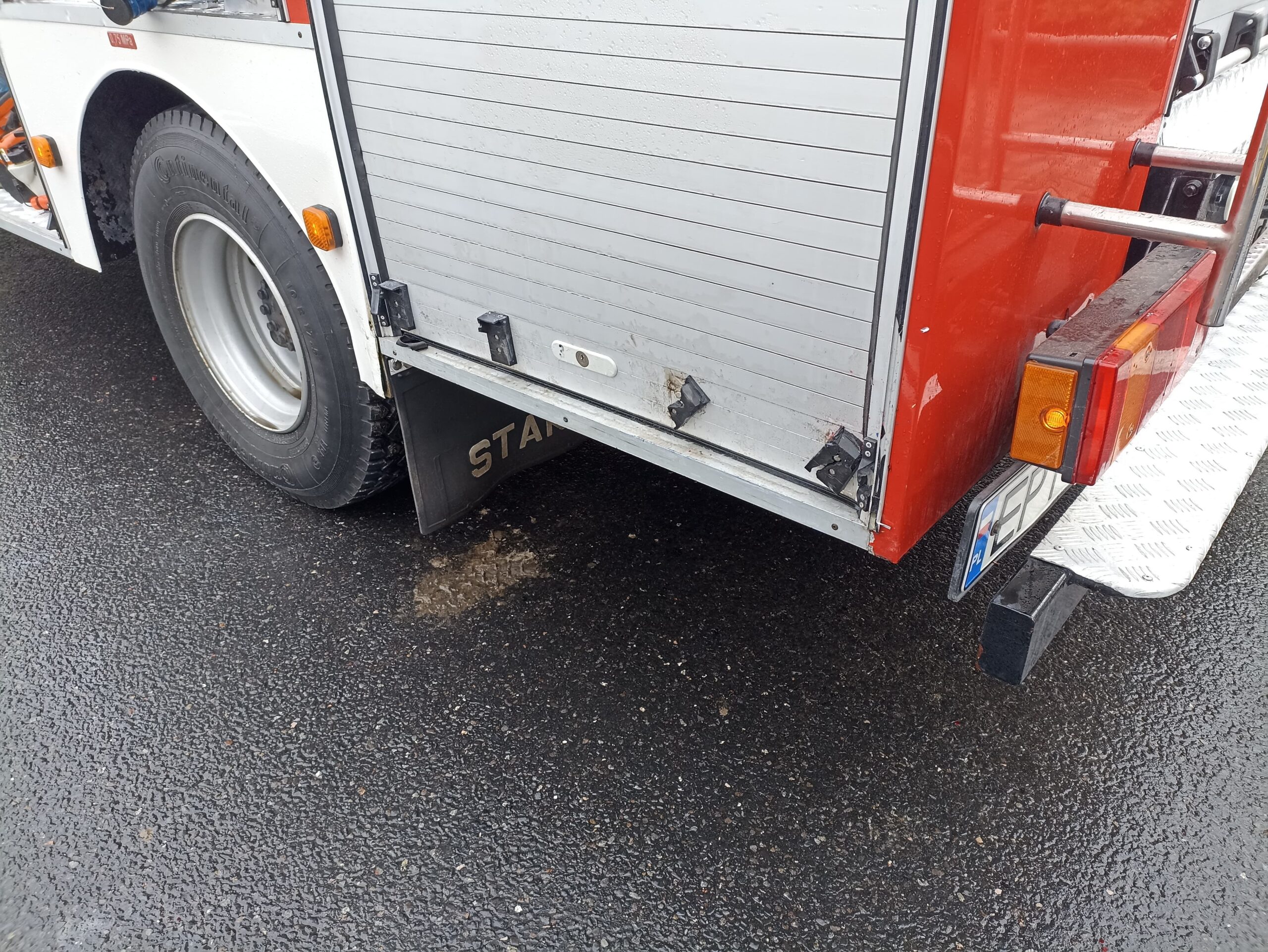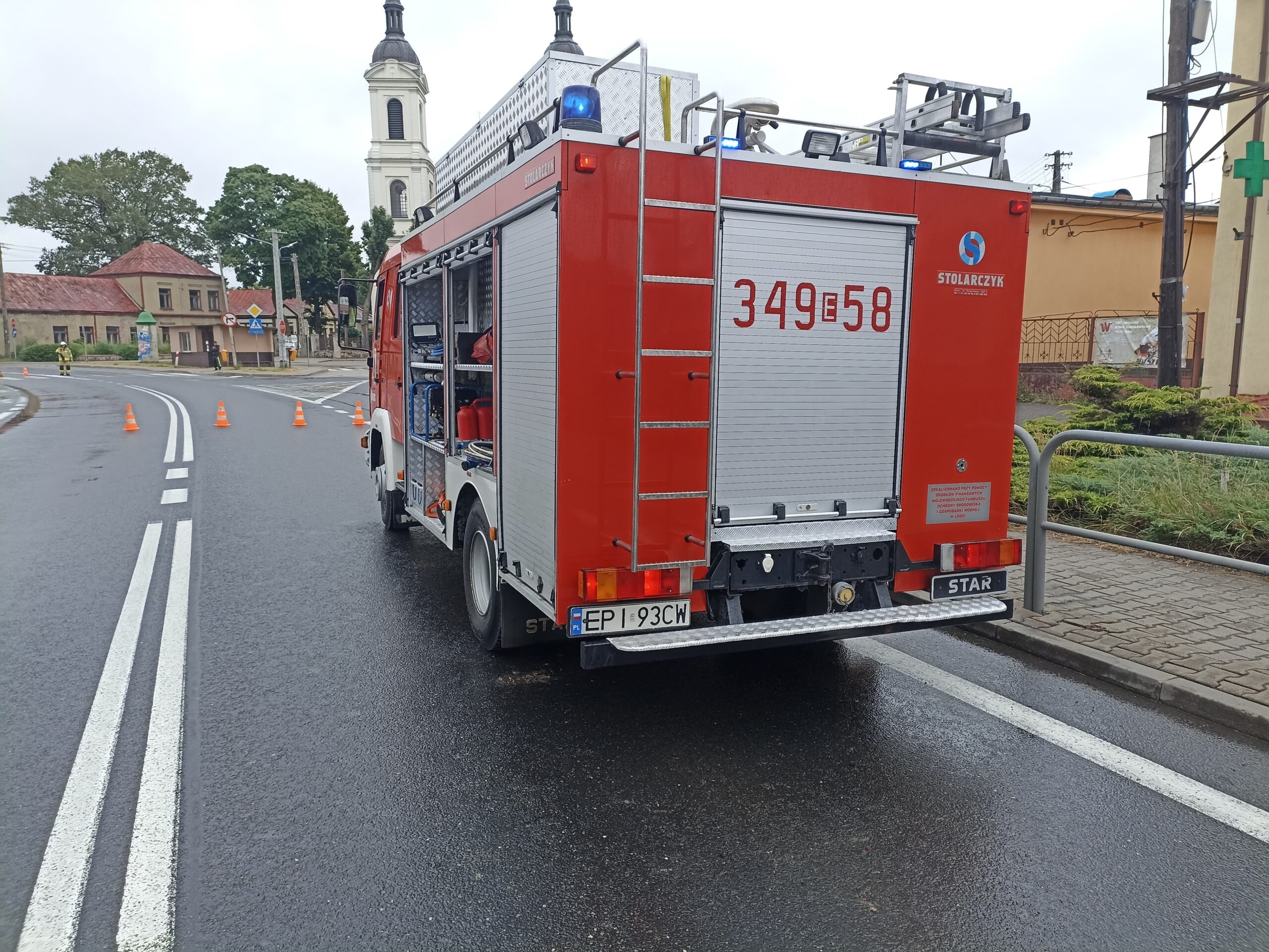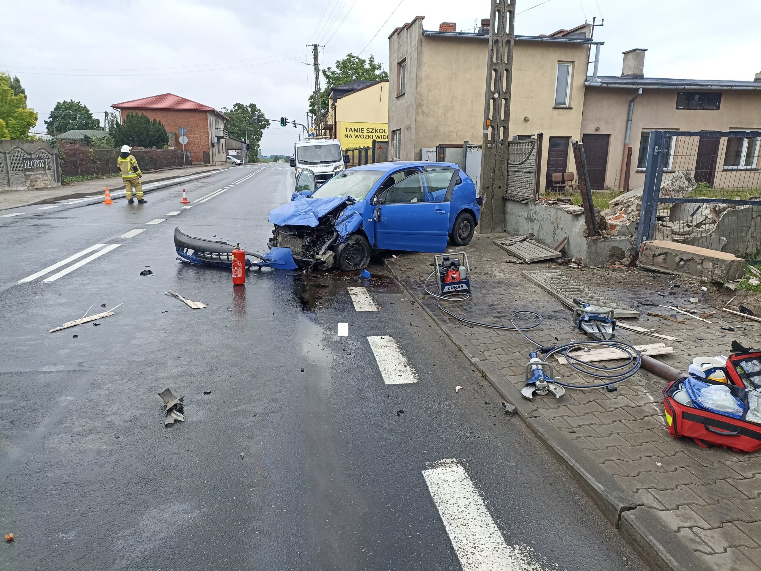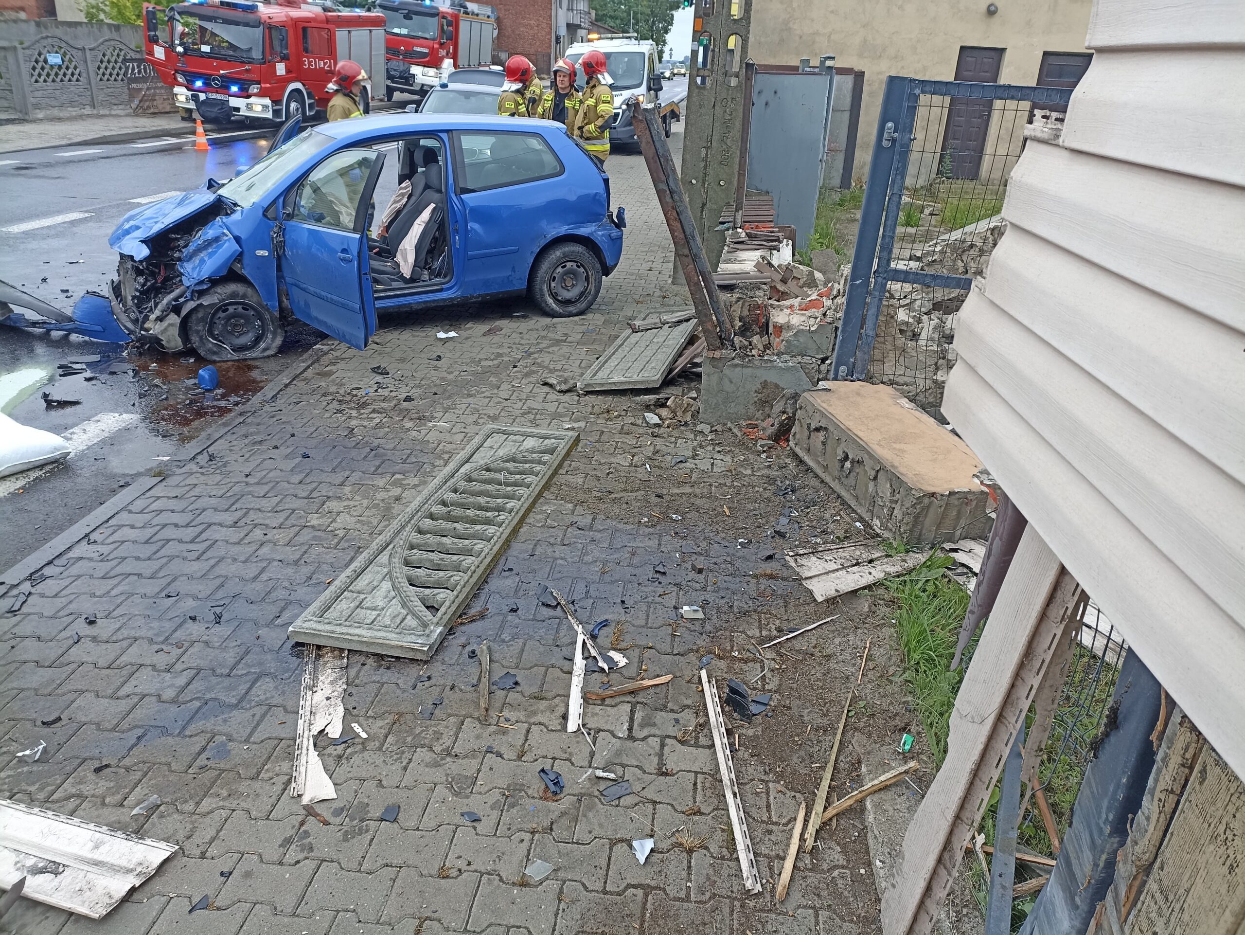 W niedzielę około 7:45, 70-letni kierowca vw polo na łuku drogi wpadł w poślizg, zahaczył wóz strażacki i wjechał w ogrodzenie, kompletnie rozbijając przód swojego auta. Wóz bojowy OSP niemal w ogóle nie ucierpiał. Strażacy wracali z akcji ratunkowej na autostradzie A1. Starszemu mężczyźnie pomocy udzielili najpierw strażacy, a następnie załoga pogotowia ratunkowego. Dokładny przebieg zdarzenia ustalą policjanci.