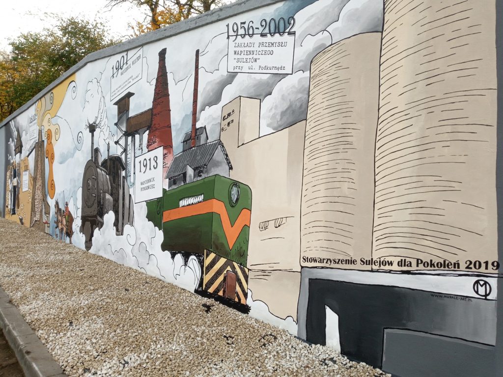 Mural w Sulejowie przy ulicy Podkurnędz został zrealizowany dzięki wygranemu projektowi w programie Fundacji TESCO – „Decydujesz. Pomagamy”.