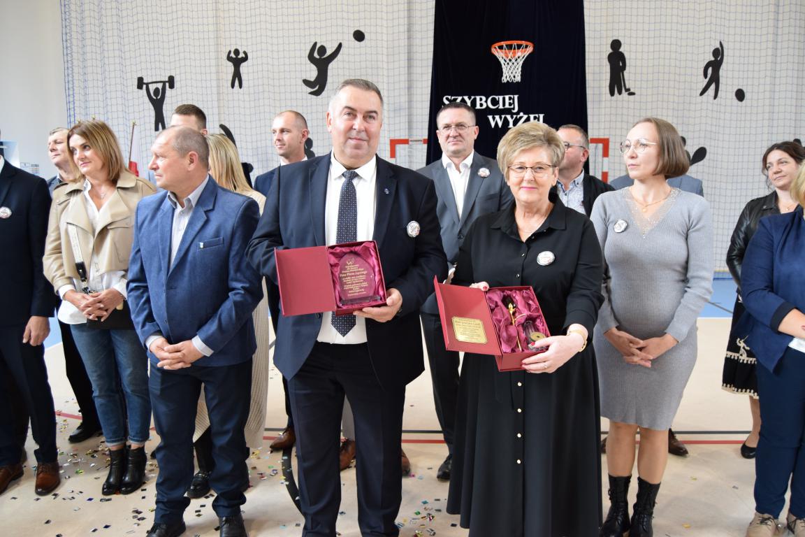 Uroczystość zainaugurowała dyrektor Szkoły Barbara Gągorowska, która powitał przybyłych gości w tym przedstawicieli władz wojewódzkich, powiatowych, samorządowych oraz lokalnych, lokalni przedsiębiorcy oraz duchowni. Następnie głos zabrała wójt gminy Grażyna Lasek, prezentując pokrótce historię zamysłu, planowania oraz powstawania inwestycji. Ponadto podziękowała wszystkim zaangażowanym w budowę hali, w tym pracownikom urzędu oraz wykonawcom. – Mam nadzieję, że na tym obiekcie swoje pierwsze kroki będą stawiać przyszłe gwiazdy sportu, aby później odnosić sukcesy na arenie krajowej i międzynarodowej – powiedziała Grażyna Lasek.