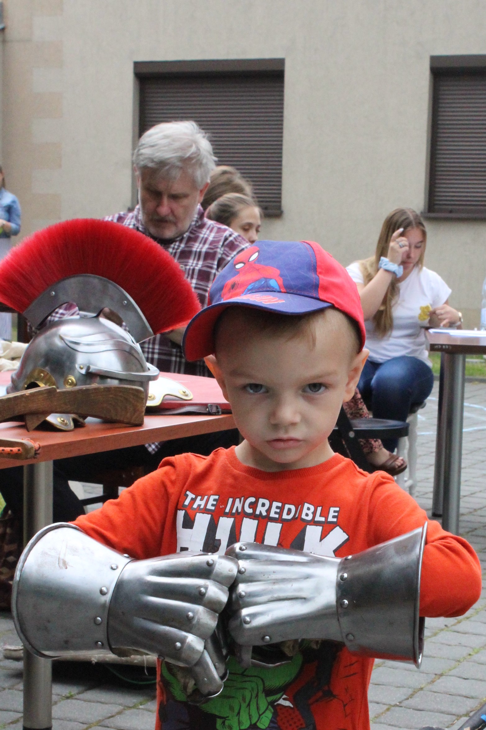Podopieczni Świetlicy poznali wybrane piotrkowskie legendy, ale mieli też możliwość spotkać się ze smokami. – Duże zainteresowanie wzbudziła archeologiczna piaskownica i możliwość znalezienia skarbu przy pomocy wykrywacza metali. Niecodziennych emocji dostarczyły jak zawsze pokazy rycerskie. Chętni mogli stoczyć pojedynek z rycerzami, przymierzyć elementy rycerskich zbroi, czy spróbować strzelania z łuku i kuszy. Przygotowano też zabawy zręcznościowe i to nie tylko te nawiązujące do średniowiecza. Pasjonaci motoryzacji mogli spróbować sił w pokonaniu toru zdalnie sterowanym pojazdem, co jak się okazało, nie należało wcale do łatwych zadań. Jeśli ktoś wolał jednak spokojniej spędzić czas, to mógł np. zasiąść w koronie na królewskim tronie, spróbować pisania gęsim piórem, wybić monetę, czy wykonać pracę plastyczną. Dla najaktywniejszych czekały słodkości. – relacjonuje Paweł Kendra z piotrkowskiego Muzeum.