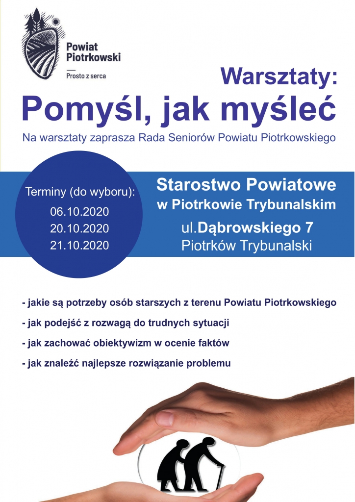 Powiat Piotrkowski wspiera wiele inicjatyw, które są dedykowane seniorom, jak chociażby niedawny Marsz Nordic Walking w Wolborzu, czy Jesienny spływ kajakowy. Starosta Piotrkowski Piotr Wojtysiak podkreśla, że realizacja wielu inicjatyw nie byłaby możliwa bez znakomitej współpracy z Radą Seniorów Powiatu Piotrkowskiego i liczy na równie owocną współpracę w przyszłości. Dlatego starosta zaprasza na warsztaty przygotowane z myślą o seniorach.