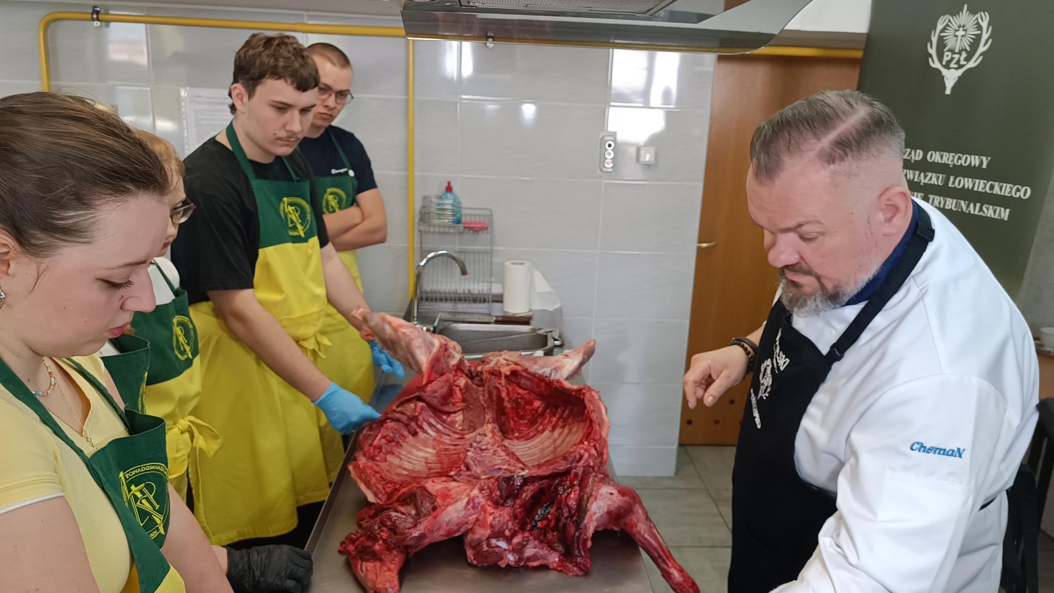 Znany piotrkowski kucharz Jakub Wolski, przeprowadził dziś (26.03) warsztaty dla uczniów klas gastronomicznych z Zespołu Szkół Ponadpodstawowych nr 4 w Piotrkowie. Młodzi adepci kucharstwa mieli okazję zapoznać się z rozbiorem tuszy dzika i poznać dwa fantastyczne przepisy. – To dla nas doskonałe lekcja, ponieważ takich zajęć w szkole jeszcze nigdy nie mieliśmy – mówi jeden z uczniów.