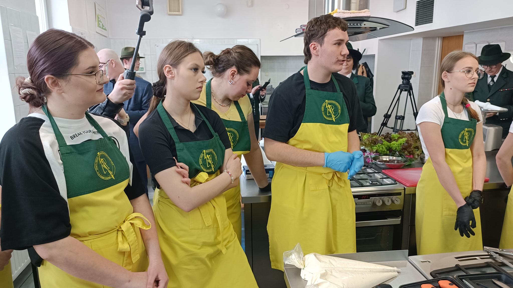 Pokazowa lekcja zbiegła się z dniem otwartym w ZSP nr 4. Uczniowie klas gastronomicznych mogli pod okiem Jakuba Wolskiego nauczyć się jak rozebrać półtusze dzika, a także wykonać dwa przepisy: jeden to burger z mięsem z dziczyzny, a drugi to tatar z jelenia.
