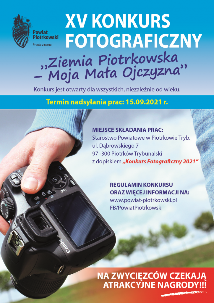 Starostwo Powiatowe w Piotrkowie ogłasza kolejną jego edycję. Konkurs jest otwarty dla wszystkich fotografujących, bez ograniczeń wiekowych, którzy mogą przekazać własne, osobiste spojrzenie na Ziemię Piotrkowską. Celem konkursu jest pokazanie najciekawszych zakątków powiatu oraz odkrywanie nowych miejsc, a także zaprezentowanie, w nieco inny sposób, tego, co z pozoru wydaje się codzienne i opatrzone.