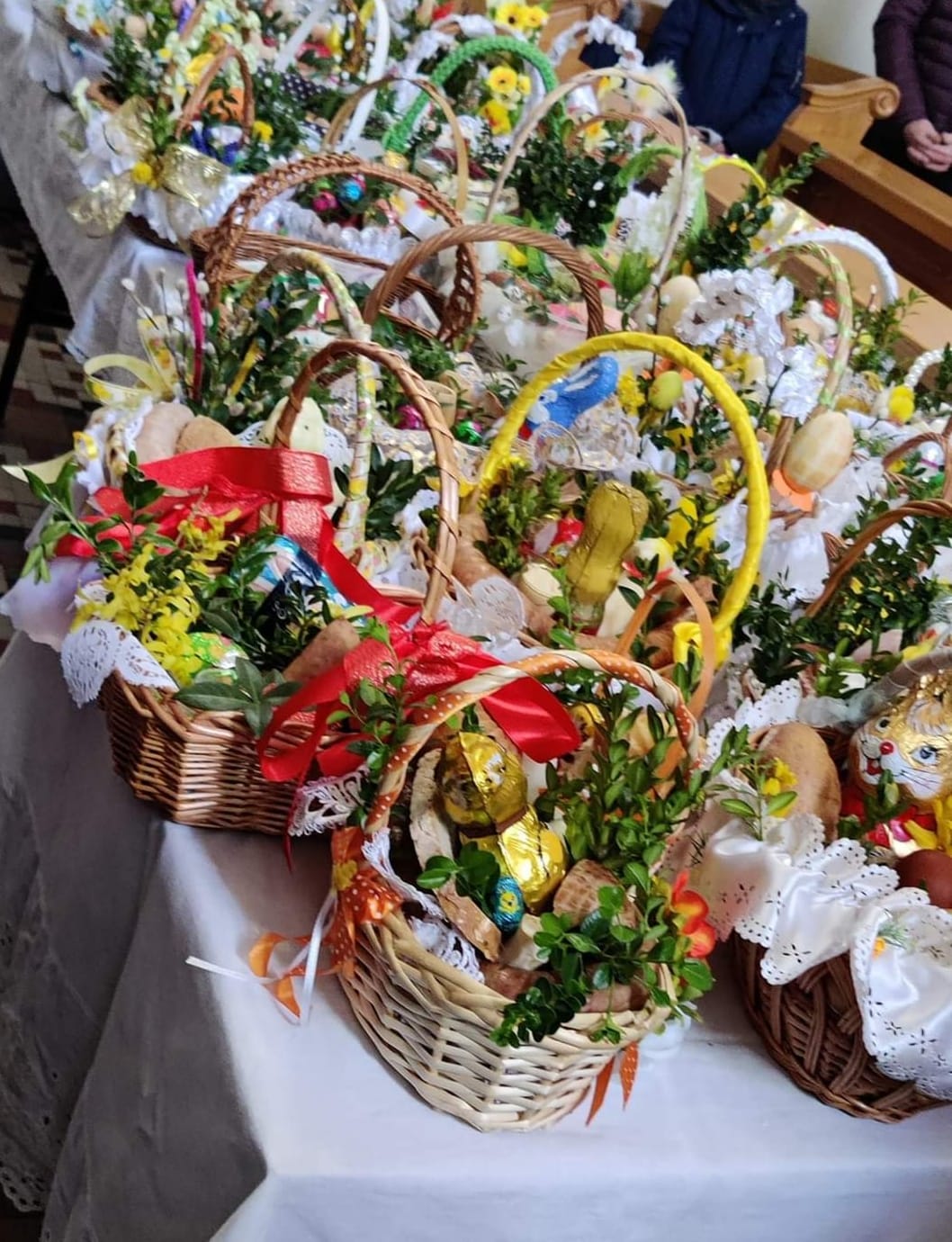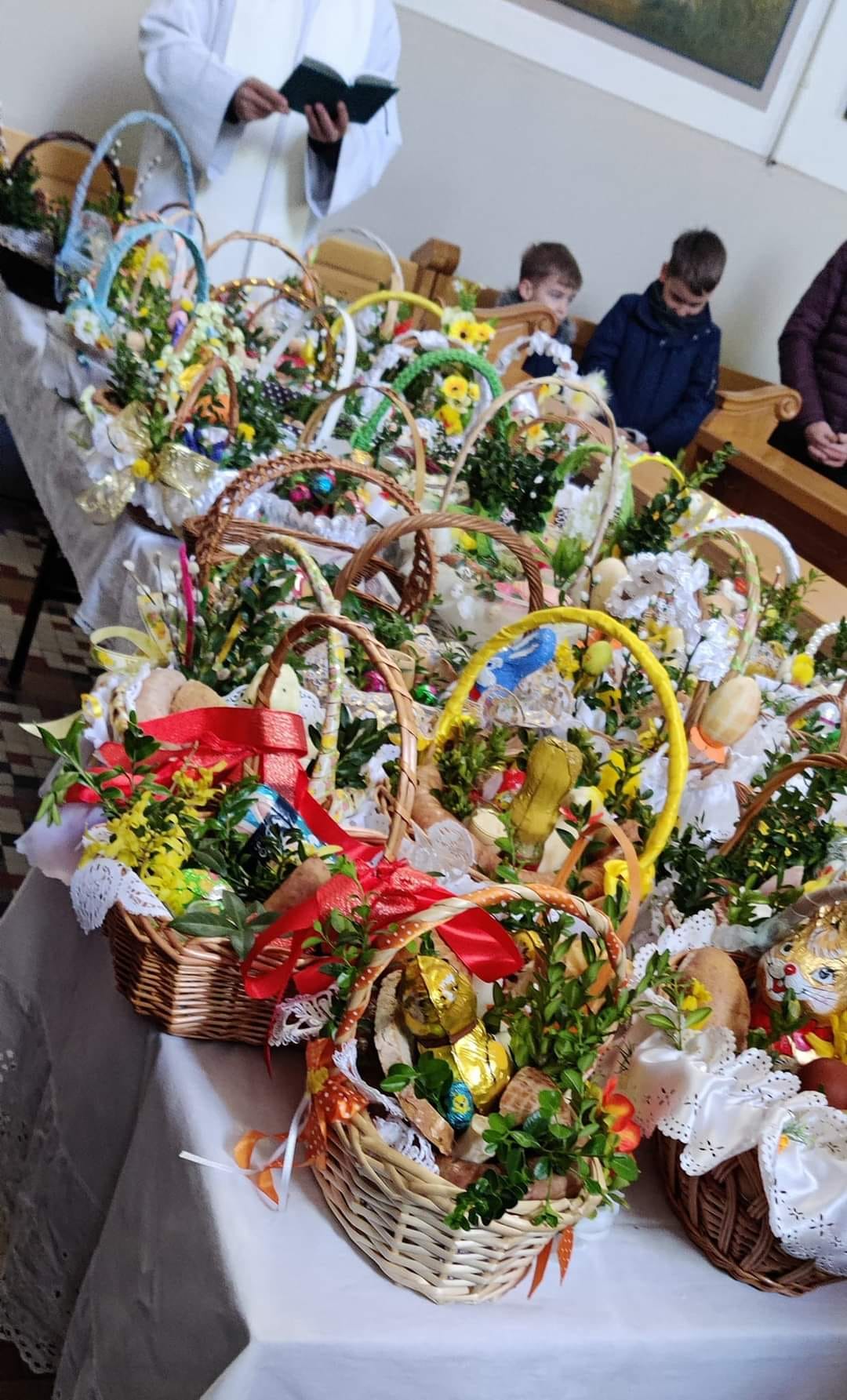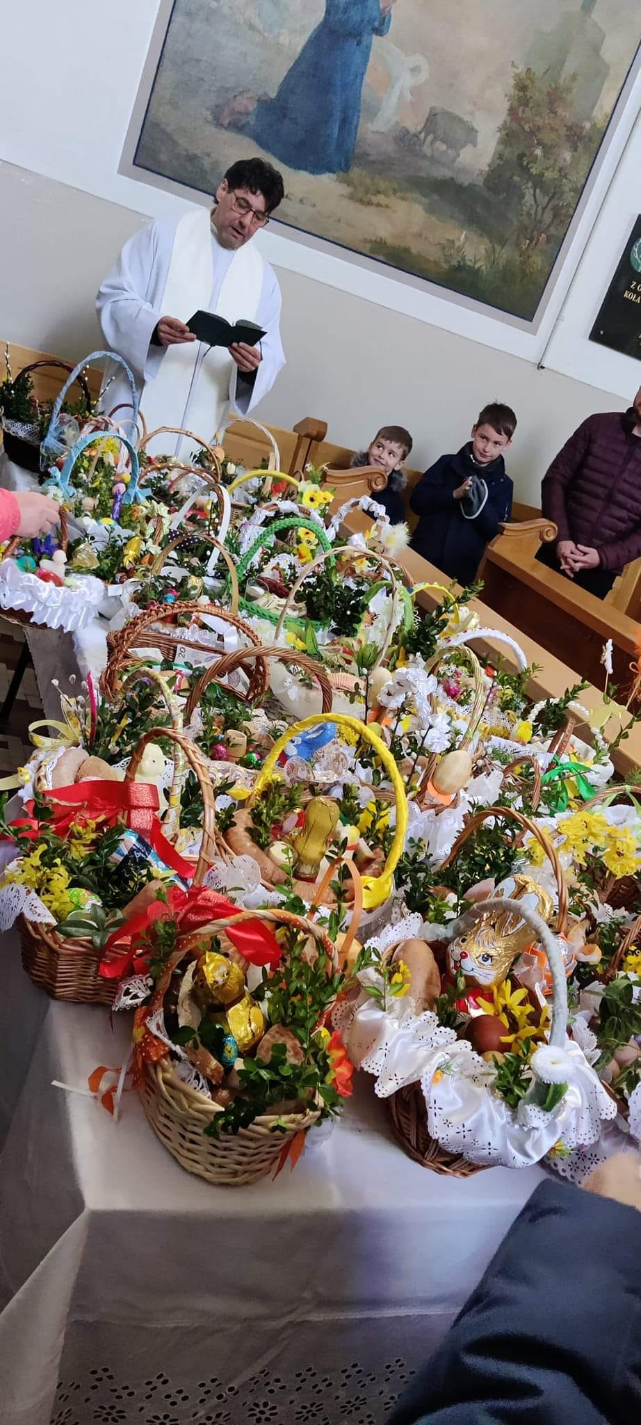 W trzeci dzień Triduum Paschalnego wierni przynoszą do kościoła pokarmy, by ksiądz je poświecił. W koszyczku powinny znaleźć się przede wszystkim: chleb, jajka, wędliny, sól i baranek. Do koszyczka można włożyć także ser i chrzan.