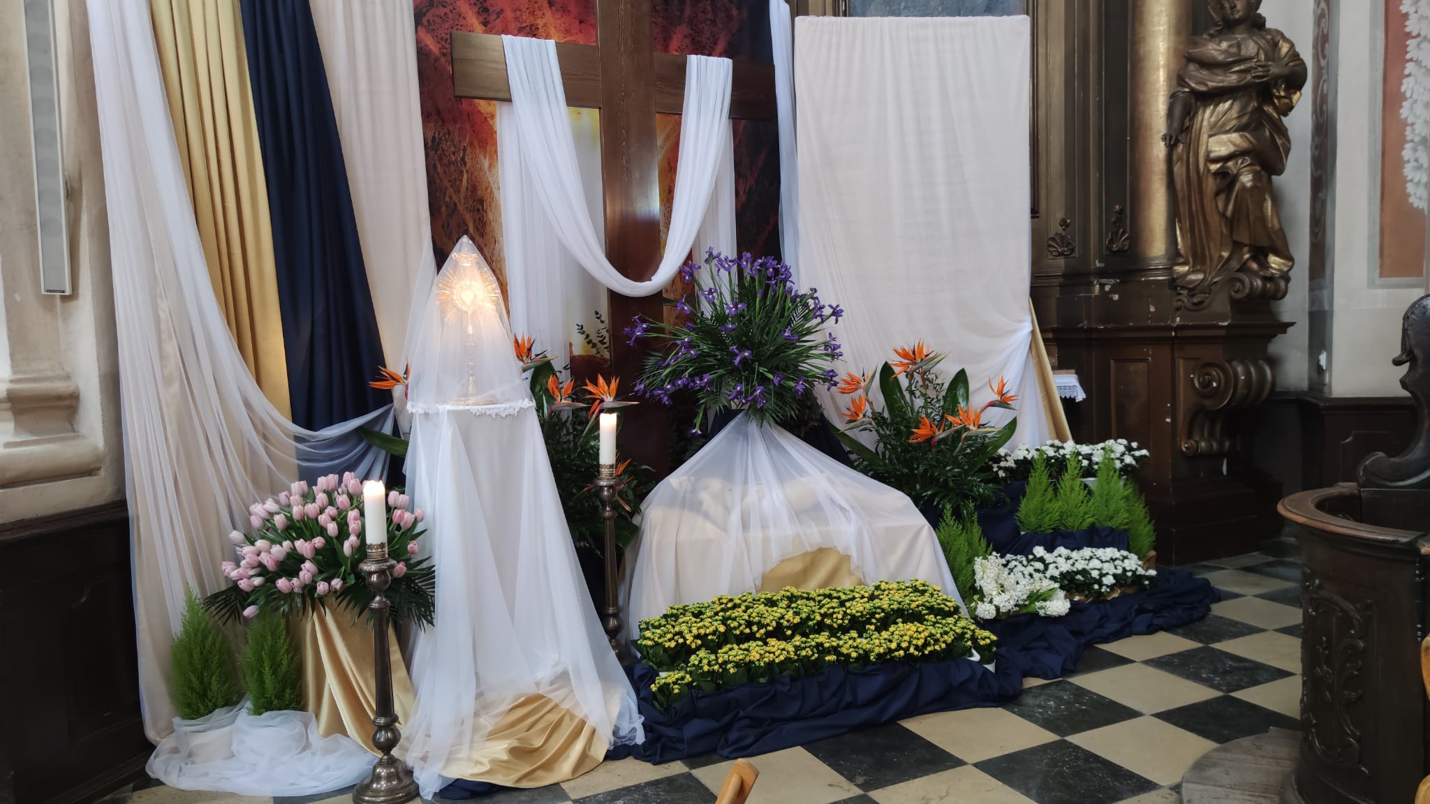 W Wielką Sobotę Kościół trwa przy grobie Pańskim, rozważając mękę. Ołtarz pozostaje obnażony. Istnieje też zwyczaj odwiedzania symbolicznych grobów Pańskich w kościołach, a także grobów bliskich osób na cmentarzach.
