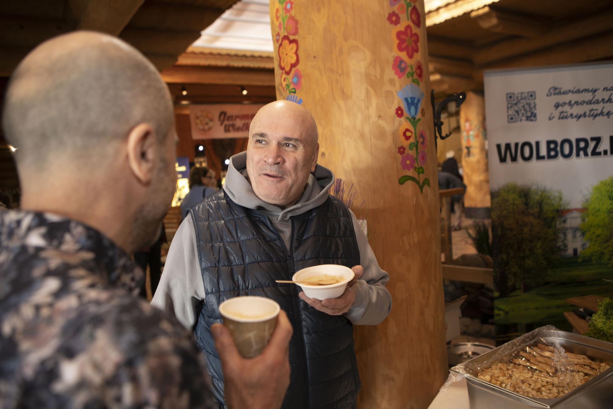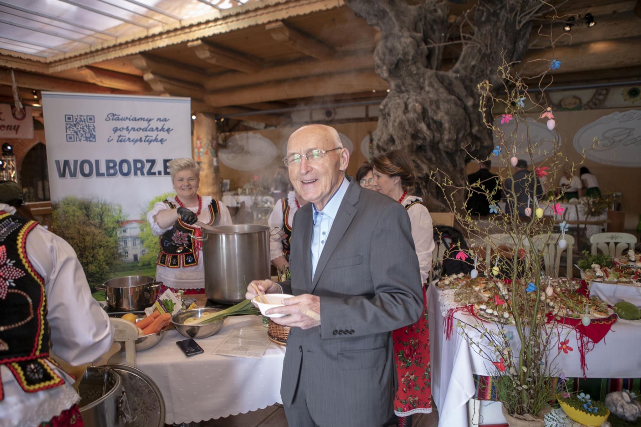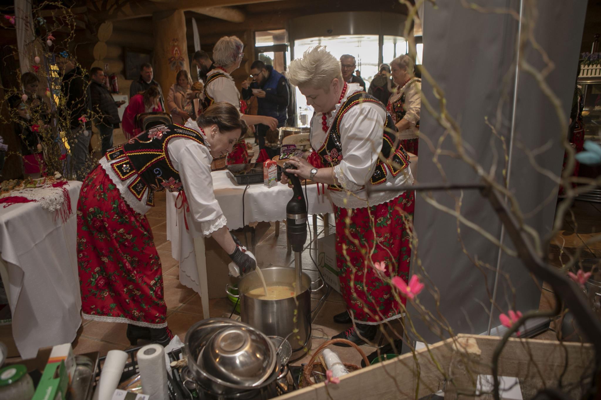 – Na naszym stoisku dostępne są pieczone mięsa, pasztety, sałatki, ale przede wszystkim barszcz z białą kiełbasą, który króluje ale naszych stołach, bo jest to pierwsze danie po Wielkim Poście. Więc mamy barszcz biały z kiełbasą, żeberkiem, jajeczkiem oraz własnym chlebem na zakwasie, to wszystko można spróbować na naszym stoisku – opowiada Elżbieta Łoś-Roczek z Koła Gospodyń Wiejskich Stobnica w gminie Ręczno. – Wszystkie te rzeczy, są tradycyjne przepisów stworzonych przez nasze babcie i prababcie – dodaje.