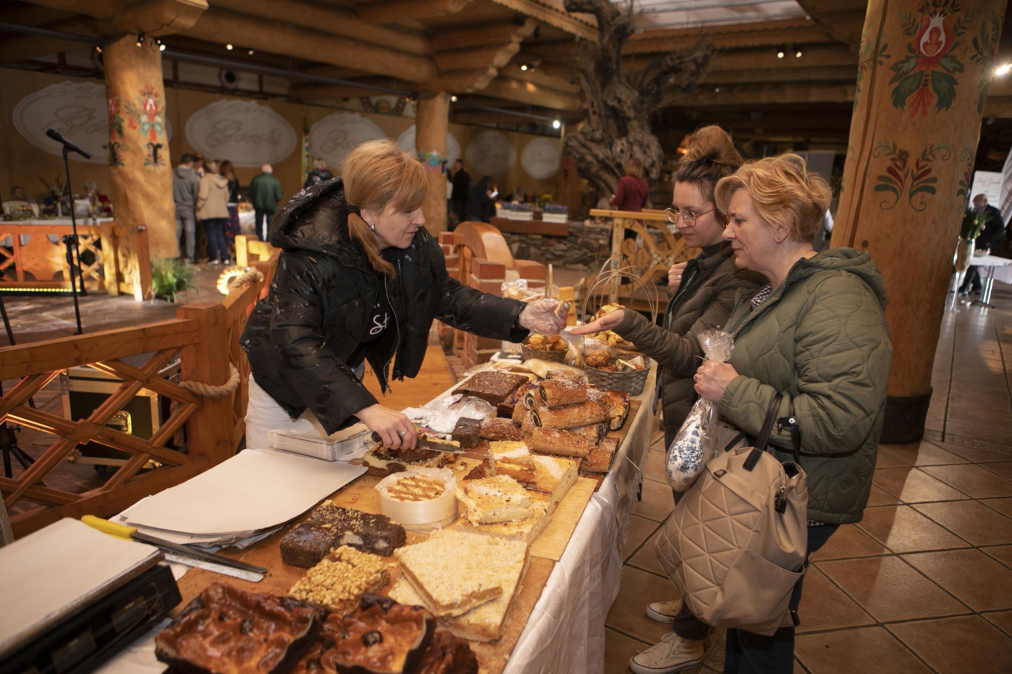 – Pokazujemy dzisiaj pasztet z żurawiną, a także pasztet z cukinii. Na naszym stoisku znajdziemy przeróżne sałatki, pasty, koreczki, wędliny oraz różne tradycyjne ciast i mazurki – mówi Sandra Nowicka z KGW Bagno.