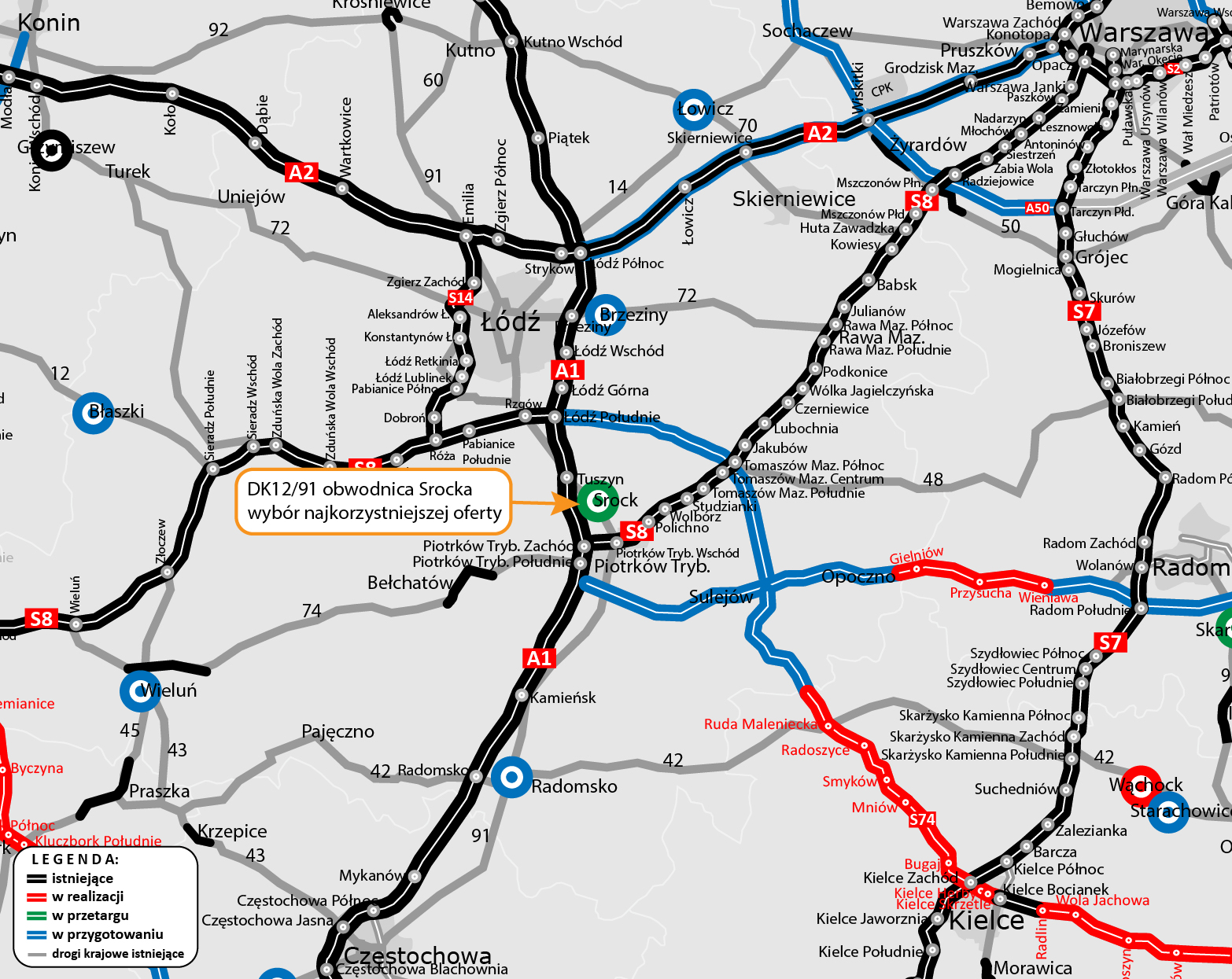 Oferta firmy Budimex została wskazana jako najkorzystniejsza w przetargu na projekt i budowę obwodnicy Srocka w ciągu wspólnego przebiegu dróg krajowych 12 i 91. Przy braku odwołań od dokonanego wyboru oraz po otrzymaniu pozytywnej opinii Prezesa Urzędu Zamówień Publicznych, będziemy mogli podpisać umowę.