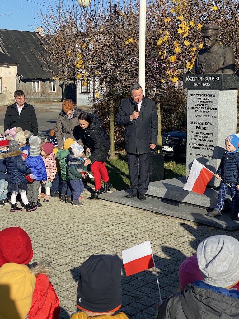 Wolborskie przedszkolaki śpiewały przed pomnikiem marszałka Piłsudskiego