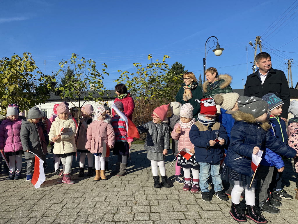 Blisko 100 dzieci z Przedszkola Samorządowego w Wolborzu odśpiewało Narodowy Hymn – Mazurka Dąbrowskiego.
