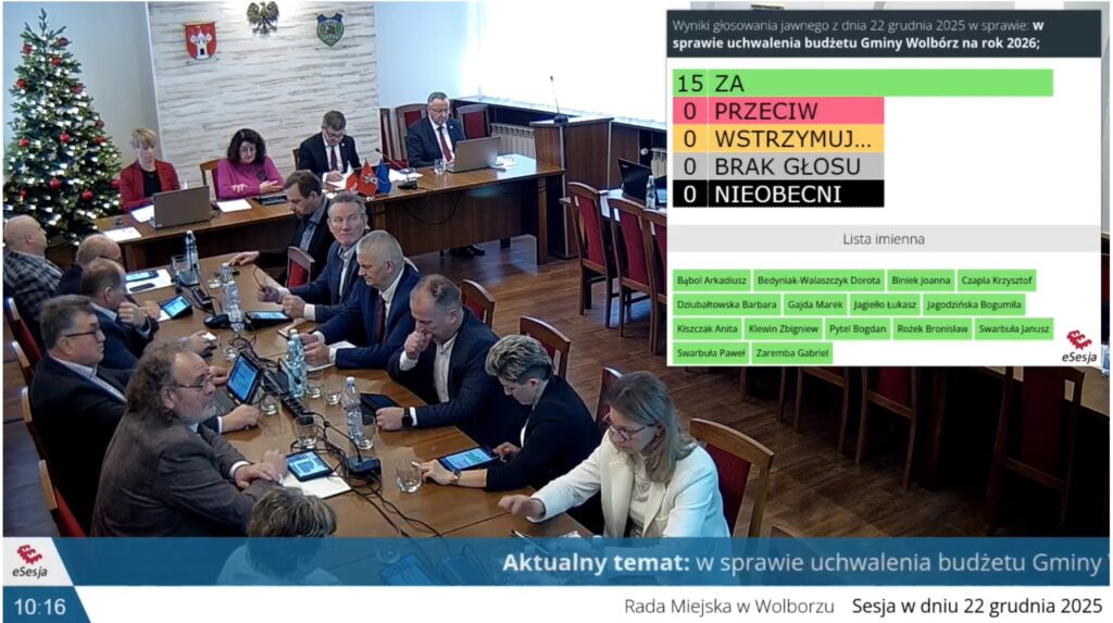 Ponad 20,5 mln na inwestycje w gminie Wolbórz. Radni przyjęli budżet na 2026 rok. Wszyscy radni głosowali za uchwałą przygotowaną przez zespół Andrzeja Jarosa Burmistrza Wolborza.