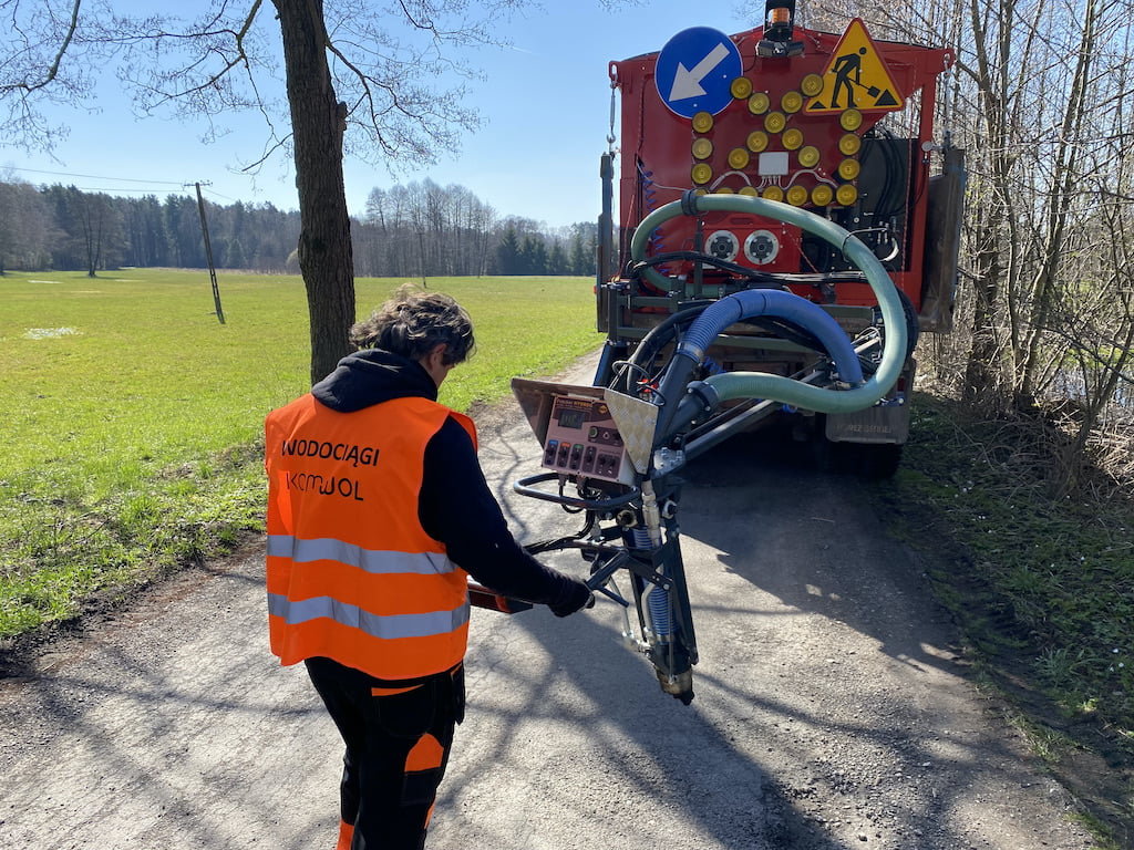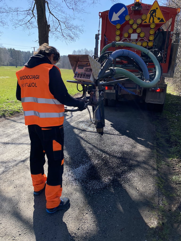 Patcher może skutecznie naprawiać uszkodzenia nawierzchni w temperaturze powyżej 5 stopni C. Dlatego dopiero teraz gminna spółka KOM-WOL zdecydowała o rozpoczęciu prac na drogach. Patcher likwiduje ubytki nawierzchni na drodze do terenów rekreacyjnych nad Zalewem Sulejowskim. W kolejnych dniach urządzenie spotkamy na innych gminnych drogach.