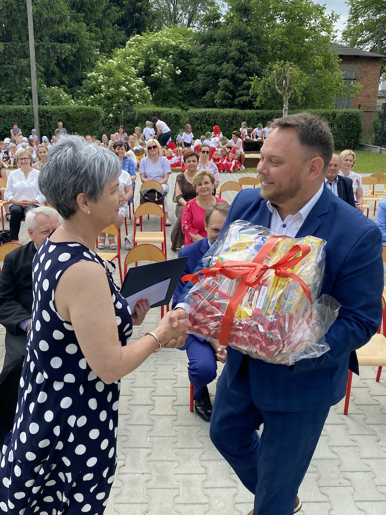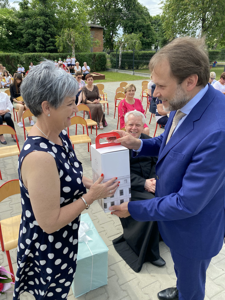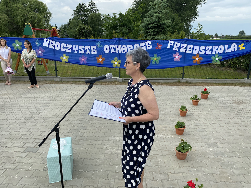 Gości zebranych na placu przedszkolnym powitała dyrektor Iwona Glejzer. Było o historii i teraźniejszości działalności przedszkolnej w Wolborzu. Pierwsza przedszkolna placówka w Wolborzu powstała w 1910 r. z inicjatywy ówczesnego proboszcza ks. Bolesława Wróblewskiego. Ochronka prowadzona była przez opiekunkę Wandę Smółke, a utrzymywana była ze składek społecznych i funkcjonowała przez wiele lat. W następnych latach, już powojennych, w związku ze wzrostem liczby dzieci przedszkole przenoszone było do różnych budynków, od domu parafialnego, po prywatne posesje oraz do gminnego domu kultury.
