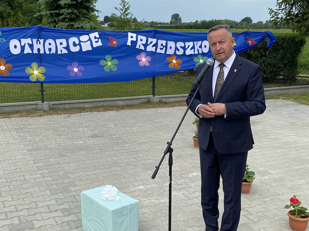 – Dziś spotykamy się przy budynku wybudowanym w 1977 r., ale ten budynek wygląda zupełnie inaczej. Zarówno na zewnątrz jak i w środku. Dzięki funduszom unijnym w wysokości 1,8 mln zł przyznanym przez Marszałka Województwa Łódzkiego wykonaliśmy przebudowę i rozbudowę Przedszkola Samorządowego w Wolborzu, a całkowita wartość projektu to ponad 3,1 mln zł. – powiedział podczas uroczystego otwarcia przedszkola samorządowego Burmistrz Wolborza Andrzej Jaros.