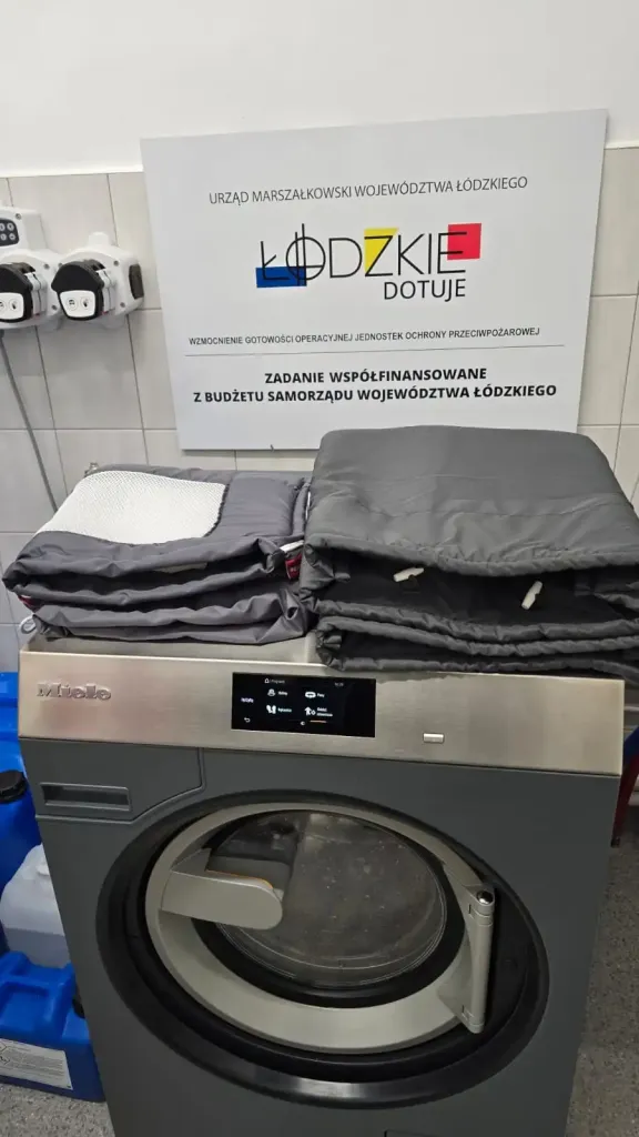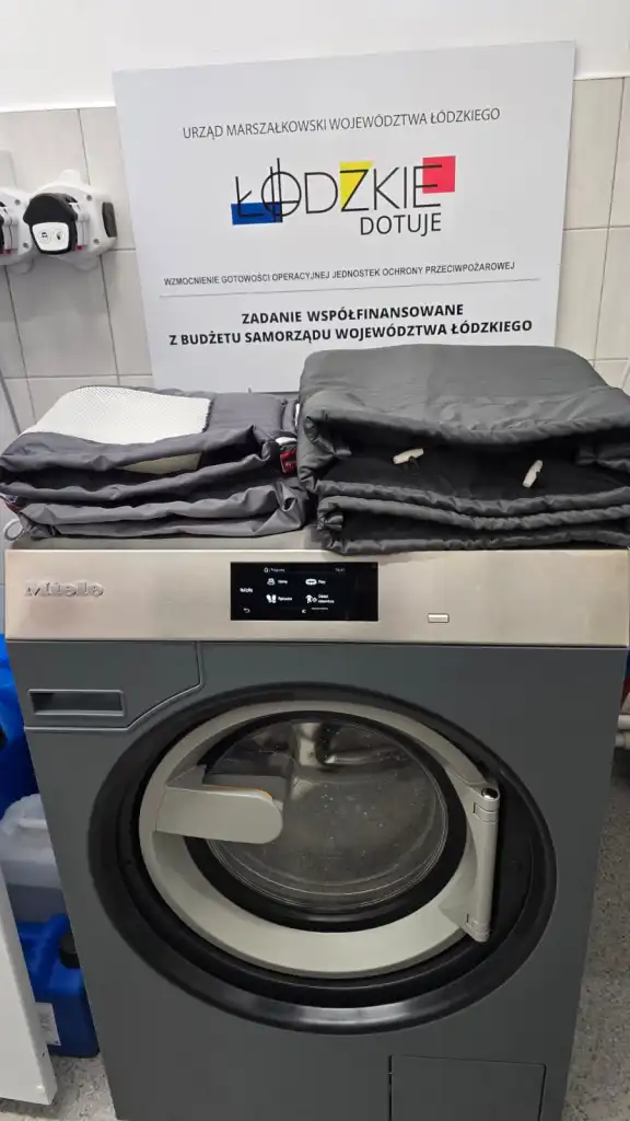 Zakup zestawu możliwy był dzięki wsparciu finansowemu z budżetu Województwa Łódzkiego w ramach programu „Wzmocnienie gotowości operacyjnej jednostek ochrony przeciwpożarowej” w wysokości 70 tys. złotych. Kolejne ogromne wsparcie na kwotę 30 tys. złotych w formie dotacji celowej otrzymaliśmy z budżetu Gminy Sulejów. Dzięki obu dotacjom udało nam się zakupić kompletny zestaw pralniczo — suszący wraz z niezbędną chemią. Serdecznie dziękujemy za dostrzeżenie nagłaśnianego przez nas problemu oraz pomoc w realizacji zamierzenia Piotrowi Wojtysiakowi, Wicemarszałkowi Województwa Łódzkiego oraz Dorocie Jankowskiej, Burmistrz Sulejowa.