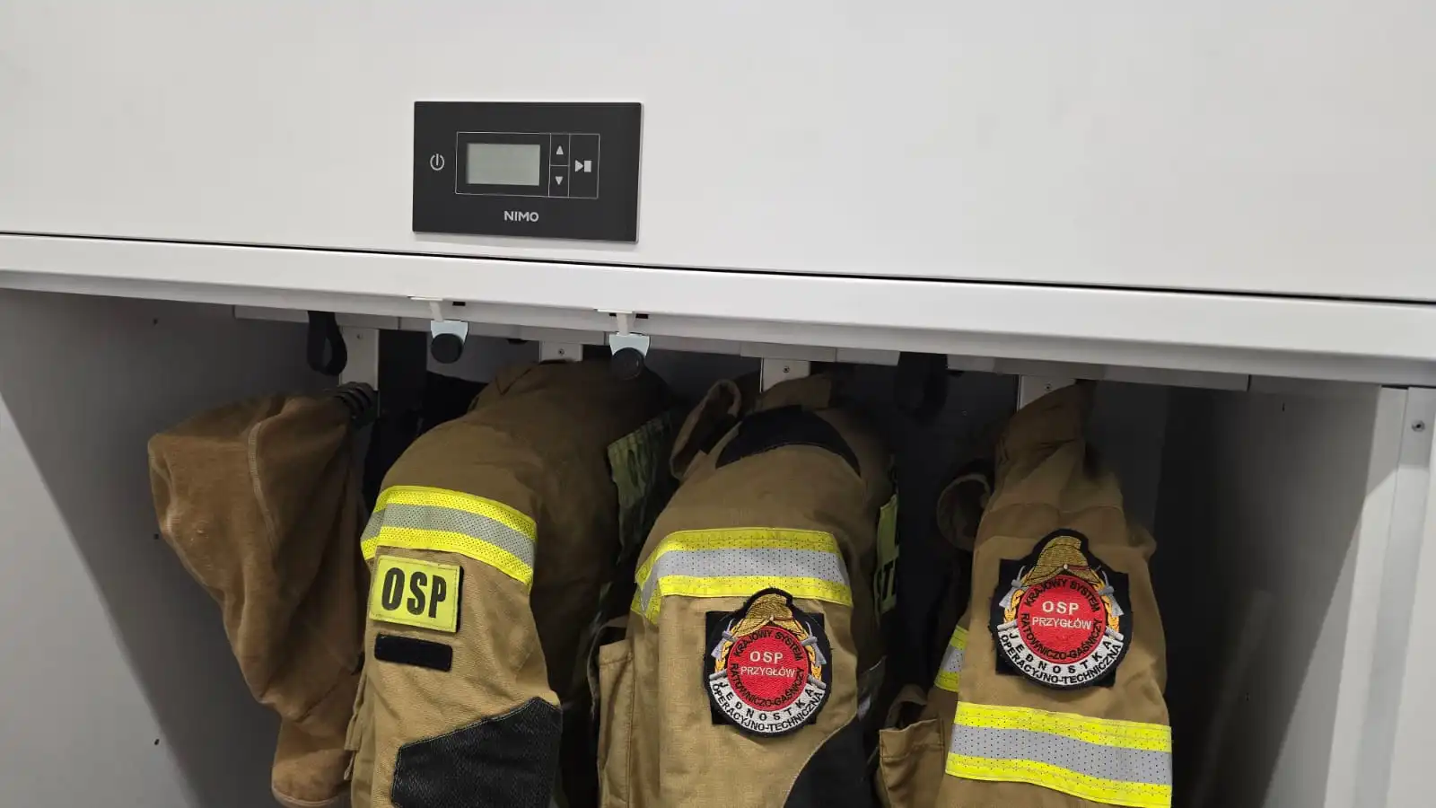 • Specjalistyczna szafa susząca, która umożliwia skuteczne i bezpieczne wysuszenie umundurowania i sprzętu.