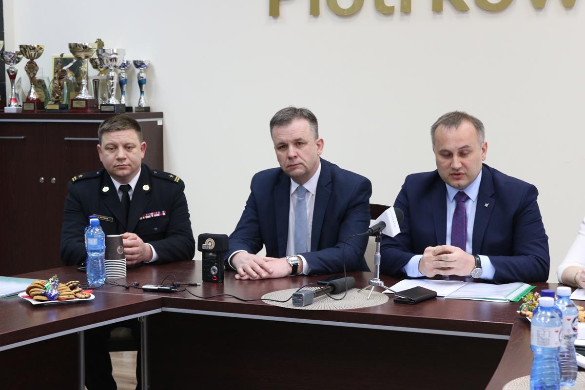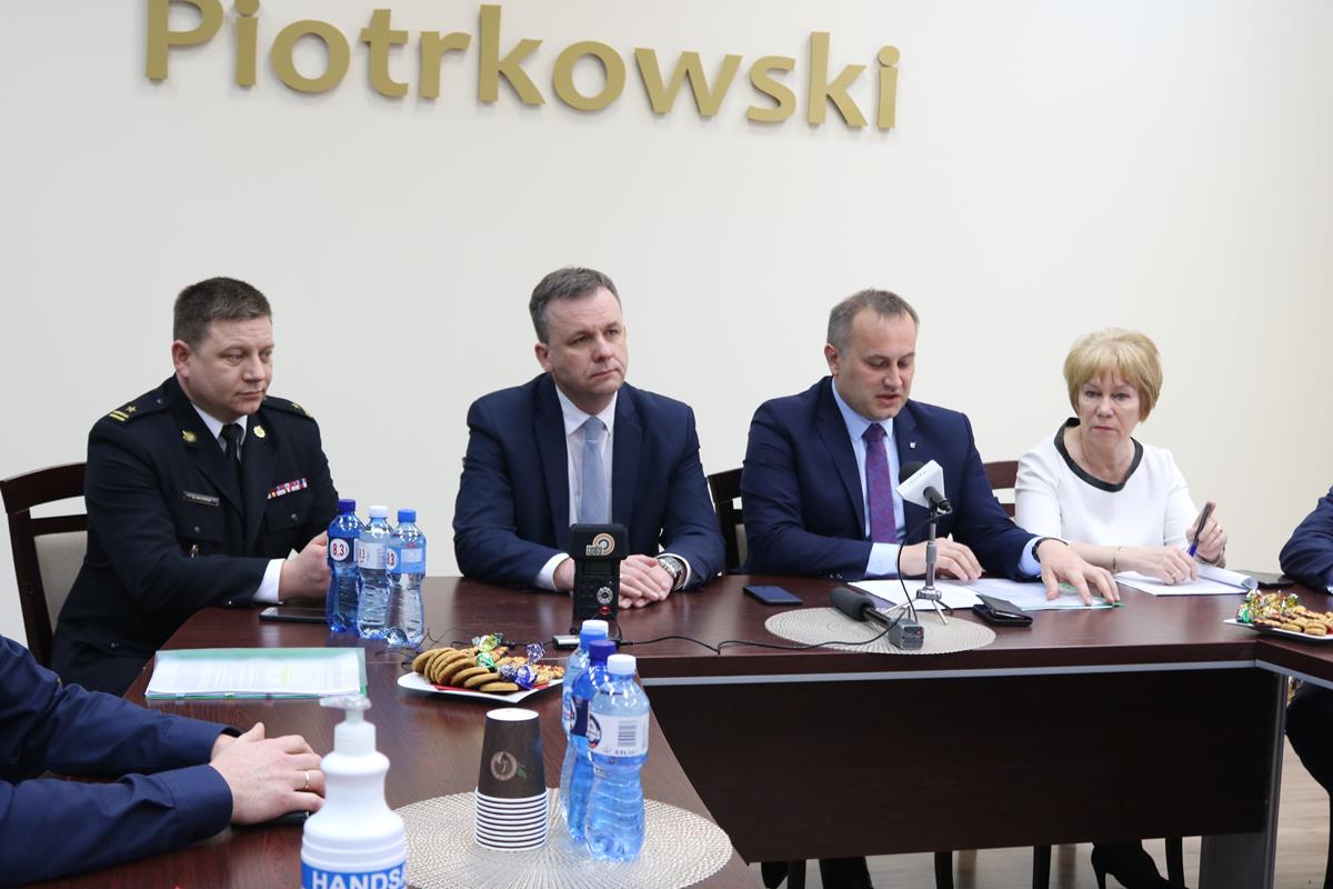 W spotkaniu z mediami udział wzięli starosta piotrkowski Piotr Wojtysiak, prezydent Piotrkowa Trybunalskiego Krzysztof Chojniak, poseł na Sejm RP Grzegorz Lorek, Elżbieta Dobrzyńska, dyrektor Państwowej Powiatowej Stacji Sanitarno-Epidemiologicznej w Piotrkowie Trybunalskim oraz przedstawiciele służb mundurowych, a także zarządzania kryzysowego.