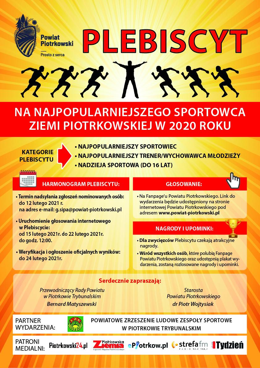 – Zapraszamy do śledzenia fanpage na Facebooku Powiatu Piotrkowskiego, gdzie publikowane będą sylwetki nominowanych sportowców i trenerów – zachęca Starosta Powiatu Piotrkowskiego Piotr Wojtysiak.