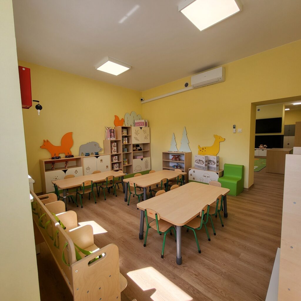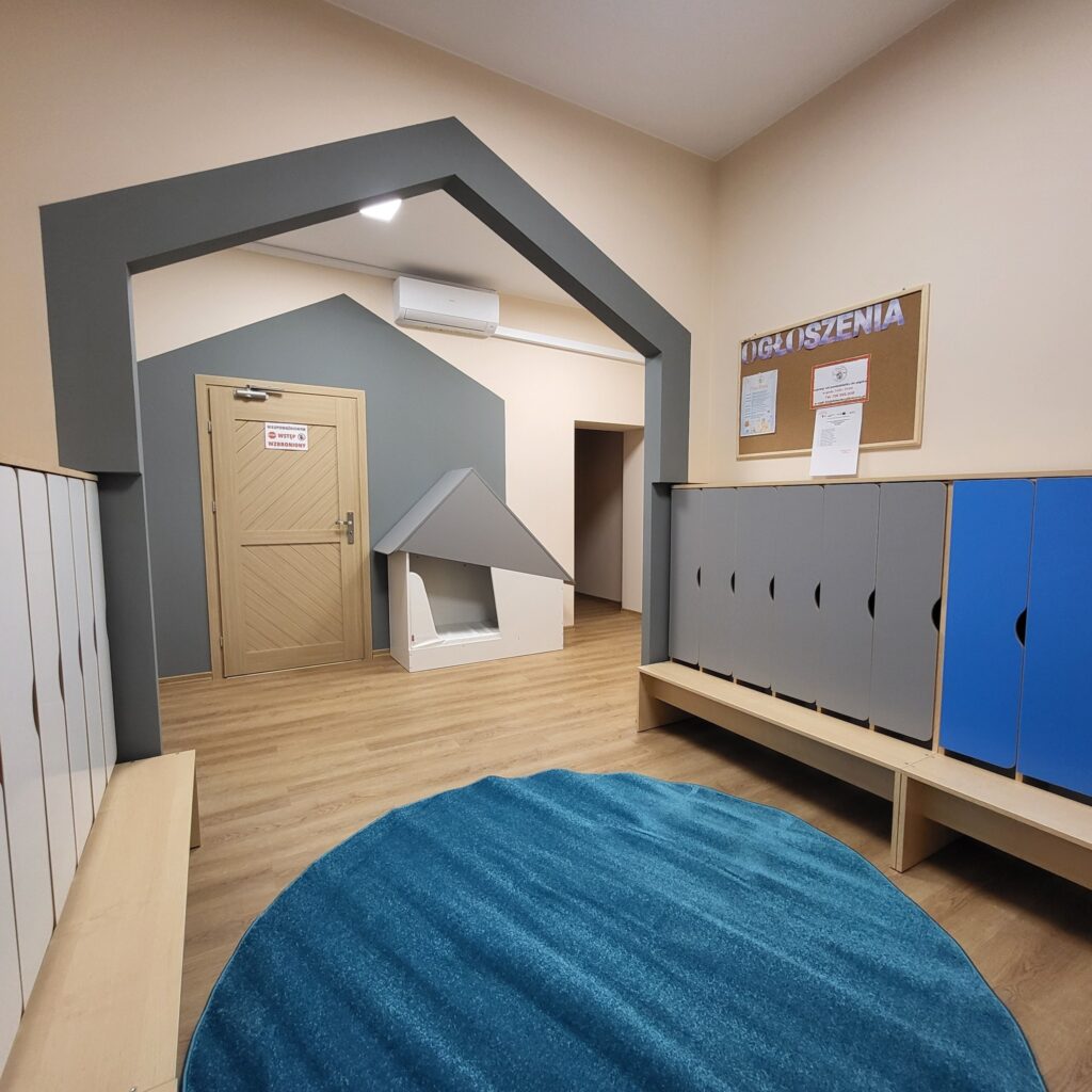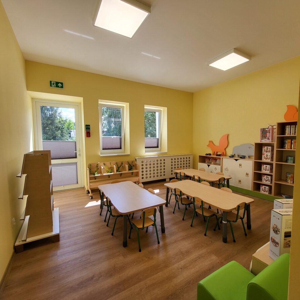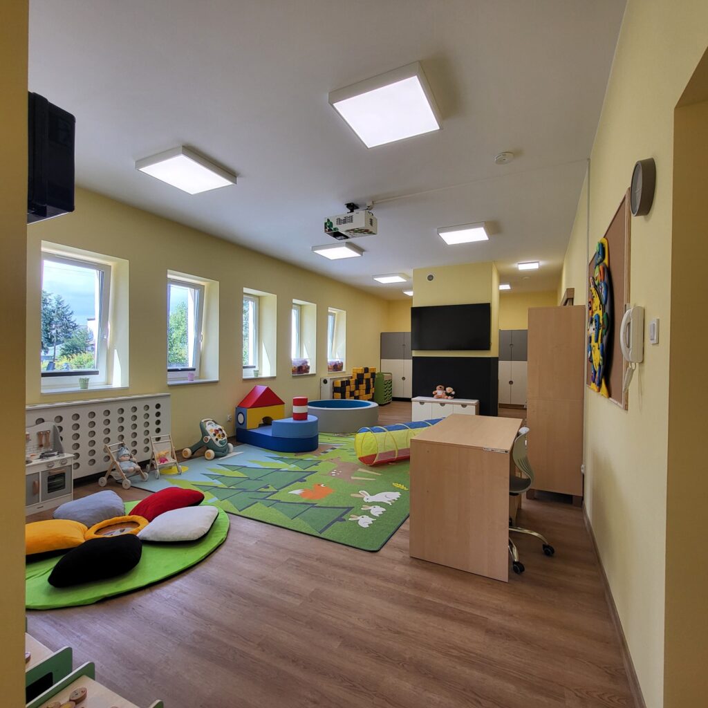 Budynek klubu został całkowicie dostosowany do potrzeb najmłodszych. Sale są kolorowe, funkcjonalne i przyjazne, wyposażone w nowoczesne udogodnienia, które zapewniają dzieciom komfort i swobodę. Dzięki instalacji fotowoltaiki z magazynem energii, obiekt jest energooszczędny i ekologiczny, a system monitoringu wewnątrz i na zewnątrz gwarantuje pełne bezpieczeństwo. Dodatkowo zamontowana klimatyzacja sprawia, że niezależnie od pogody, w klubie zawsze panują idealne warunki.