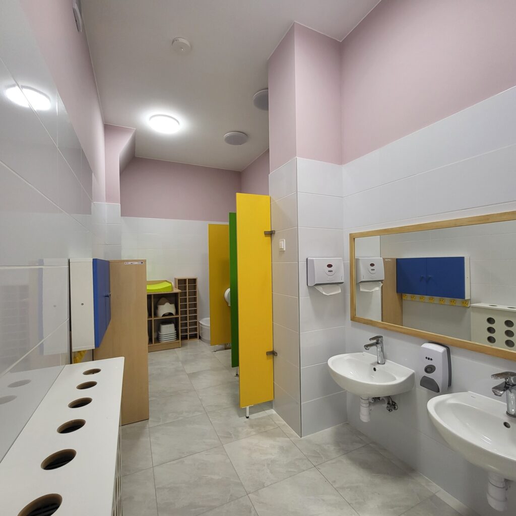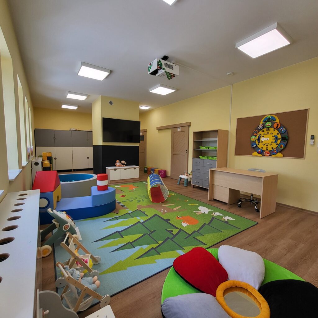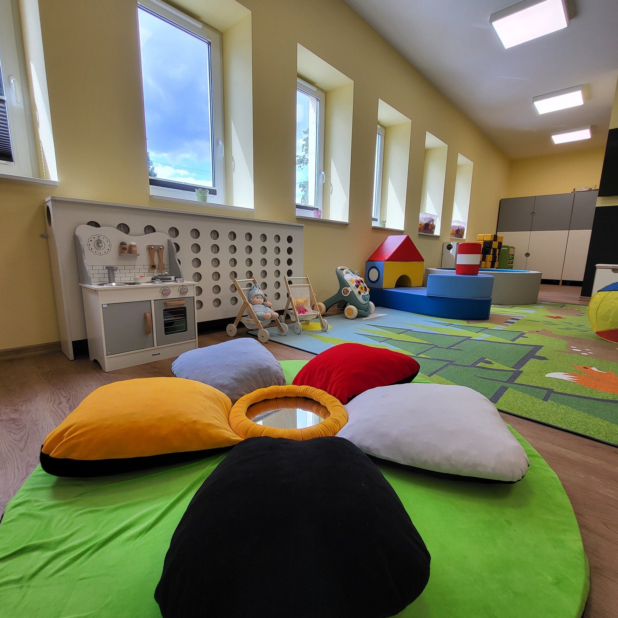 Budynek klubu został całkowicie dostosowany do potrzeb najmłodszych. Sale są kolorowe, funkcjonalne i przyjazne, wyposażone w nowoczesne udogodnienia, które zapewniają dzieciom komfort i swobodę. Dzięki instalacji fotowoltaiki z magazynem energii, obiekt jest energooszczędny i ekologiczny, a system monitoringu wewnątrz i na zewnątrz gwarantuje pełne bezpieczeństwo. Dodatkowo zamontowana klimatyzacja sprawia, że niezależnie od pogody, w klubie zawsze panują idealne warunki.