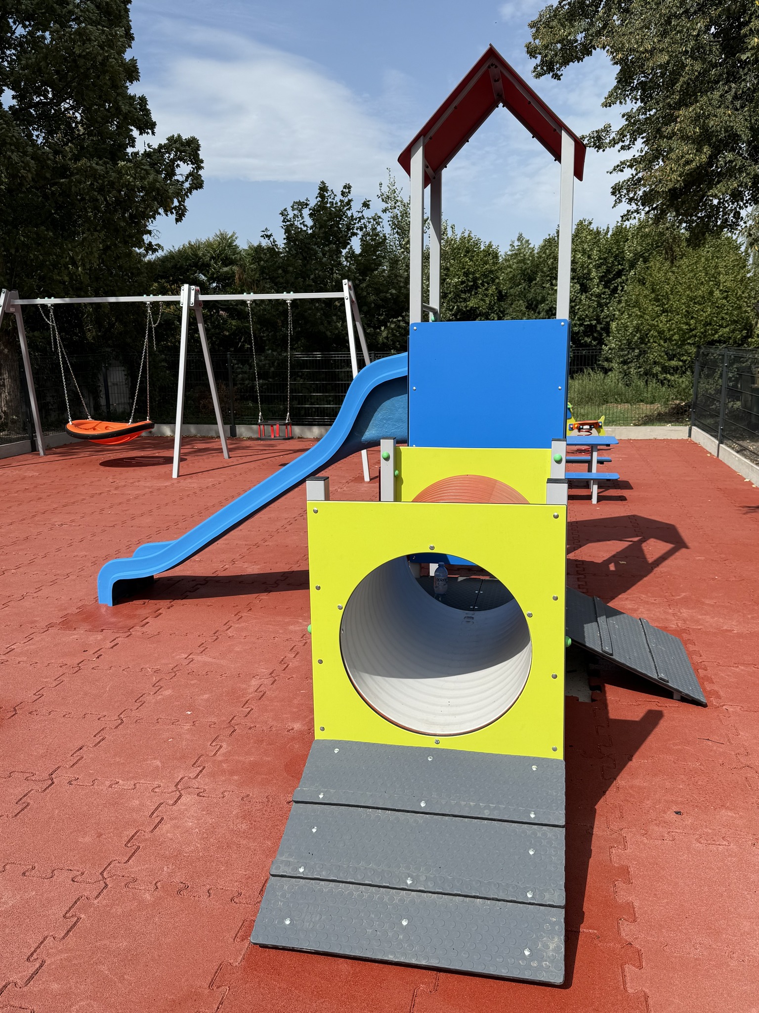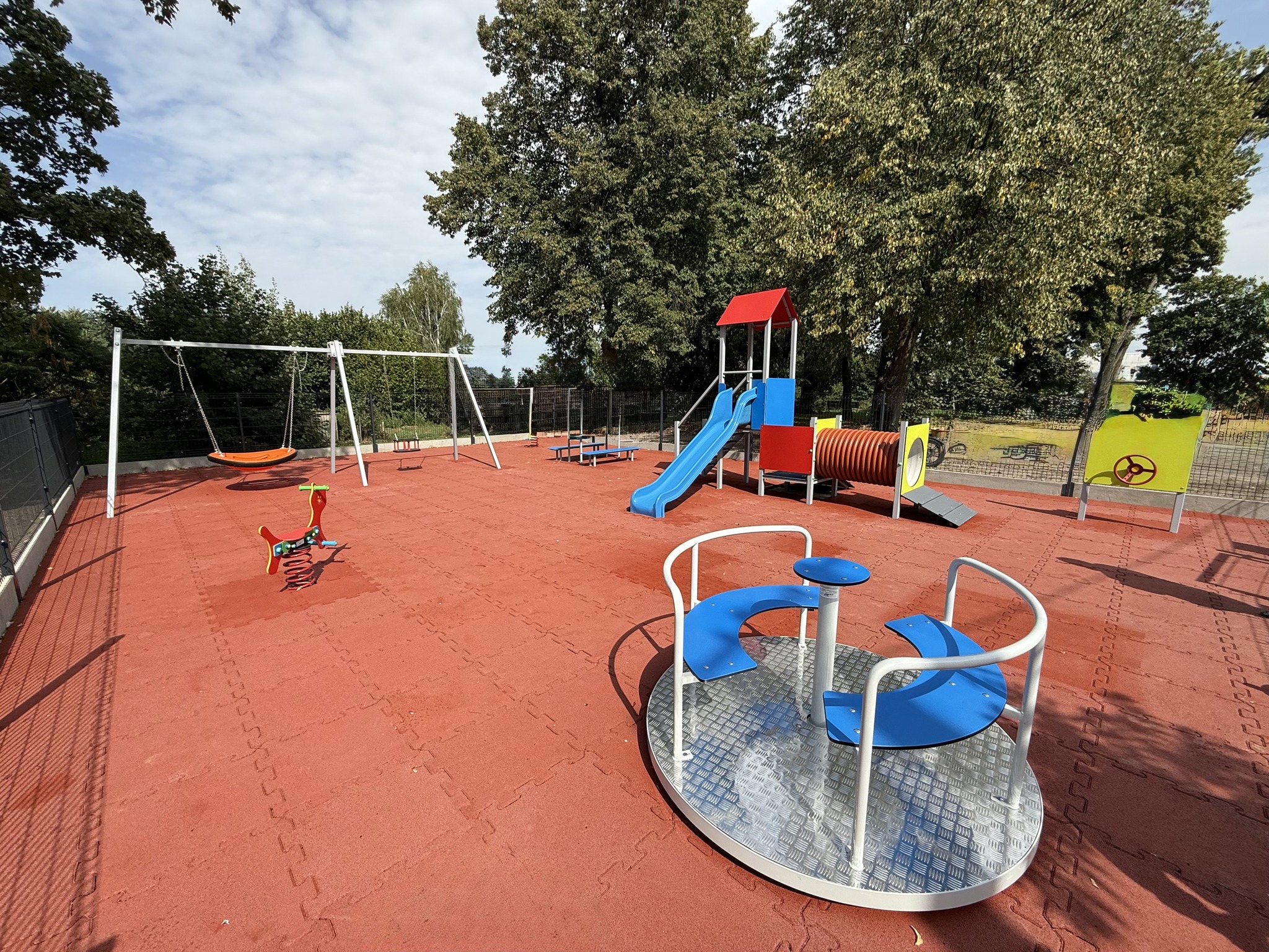 Na zewnątrz czeka na dzieci nowoczesny i bezpieczny plac zabaw – miejsce, w którym zabawa przeplata się z nauką, a energia maluchów znajduje swoje najlepsze ujście. To przestrzeń do ruchu, kreatywności i wspólnego odkrywania świata.