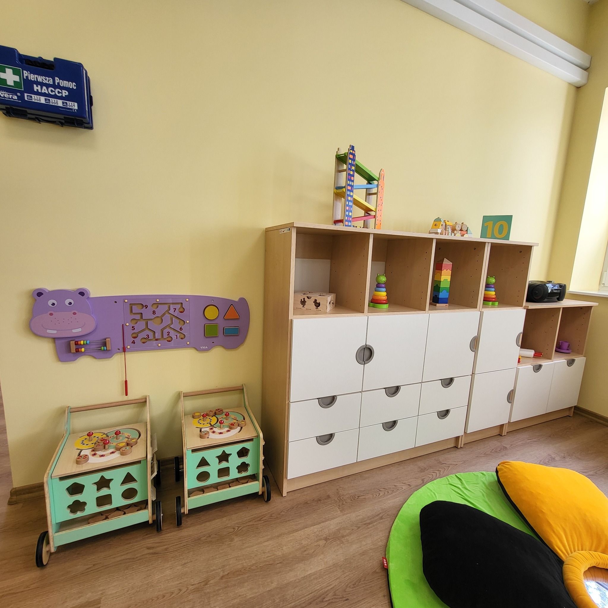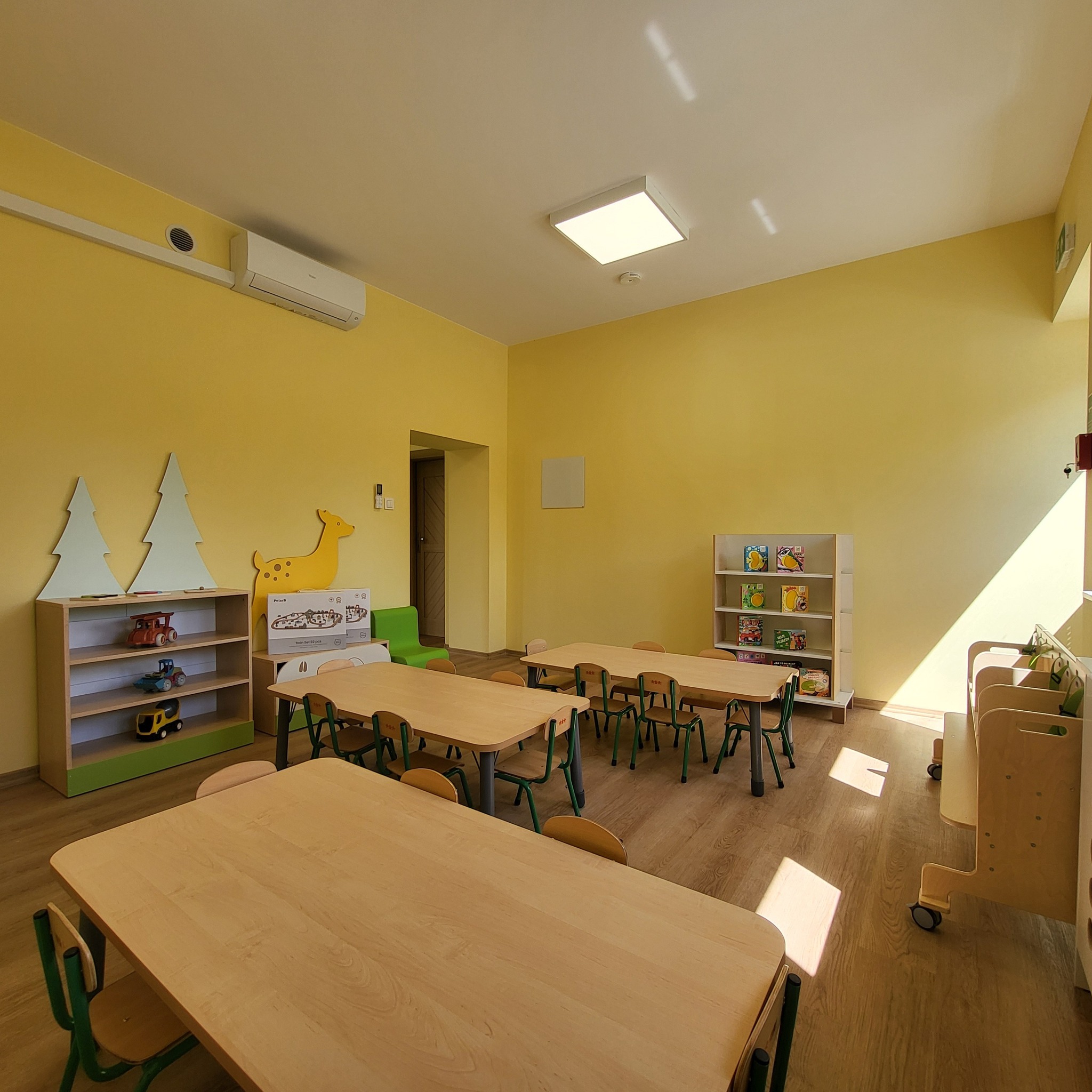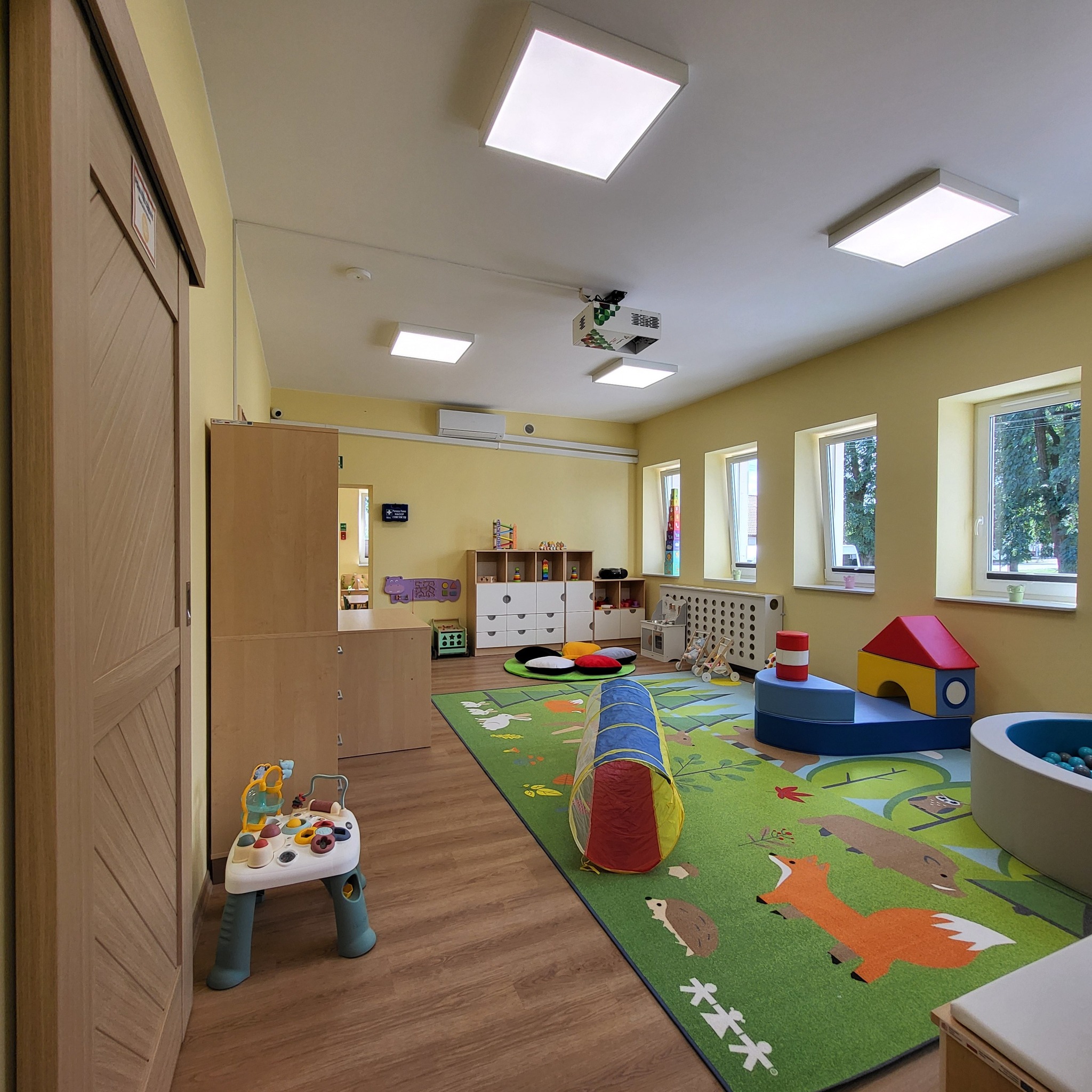 Budynek klubu został całkowicie dostosowany do potrzeb najmłodszych. Sale są kolorowe, funkcjonalne i przyjazne, wyposażone w nowoczesne udogodnienia, które zapewniają dzieciom komfort i swobodę. Dzięki instalacji fotowoltaiki z magazynem energii, obiekt jest energooszczędny i ekologiczny, a system monitoringu wewnątrz i na zewnątrz gwarantuje pełne bezpieczeństwo. Dodatkowo zamontowana klimatyzacja sprawia, że niezależnie od pogody, w klubie zawsze panują idealne warunki.