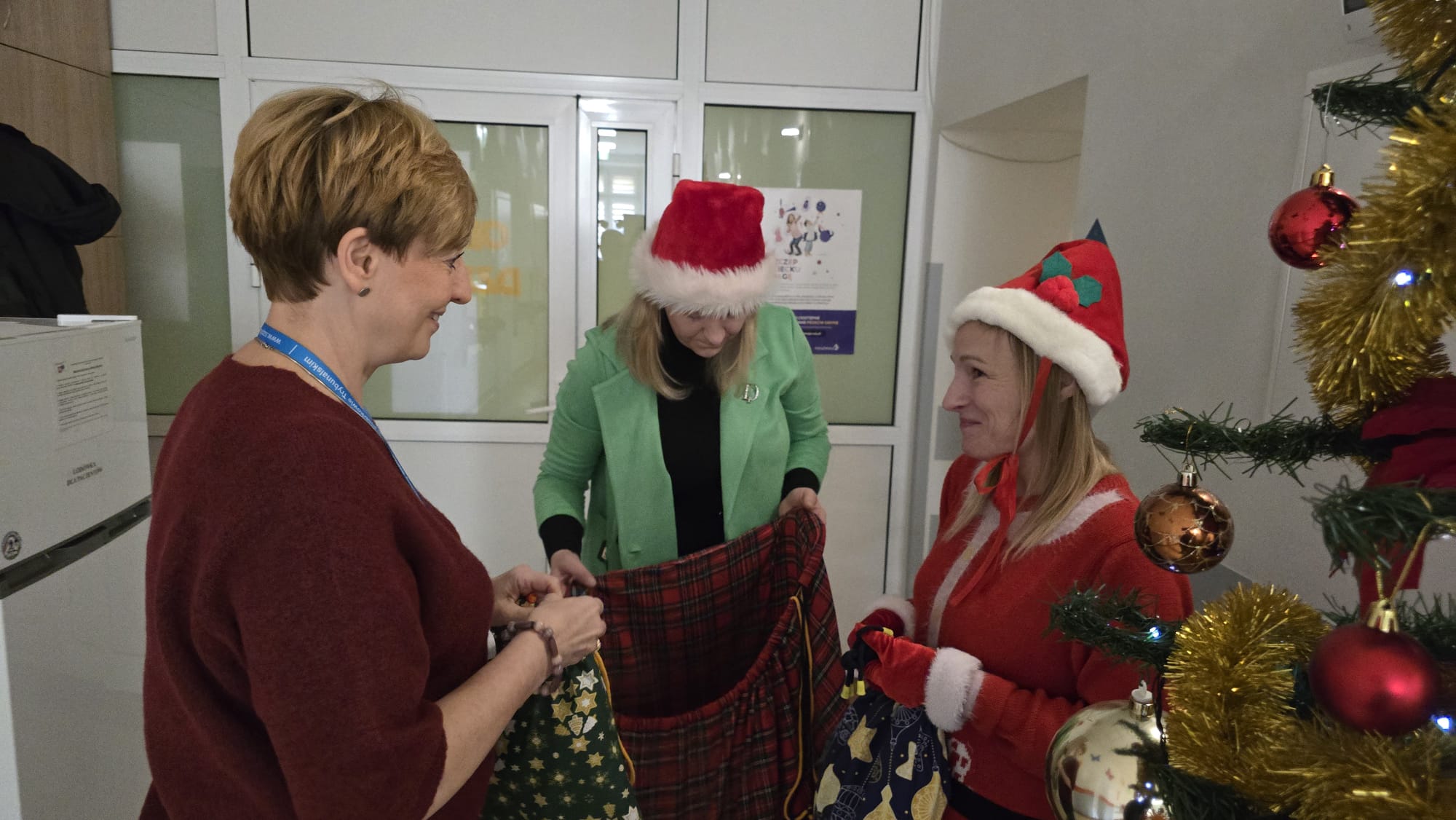 – Niestety zdarza się także tak, że dzieciaki zostają na święta w szpitalu. Niestety nie mogliśmy wszystkich wypisać. Ale jest dla nich miła niespodzianka i bardzo się z tego cieszymy, ponieważ stowarzyszenie „Niepełnosprawni, aktywni razem” zwróciło się do nas z pytaniem, czy odpowiemy pozytywnie na akcje, w której te dzieci, które są w trakcie świąt w szpitalu, będą mogły pobawić się zabawkami wyprodukowanymi własnoręcznie przez członków i przyjaciół tego stowarzyszenia. To oczywiście bardzo, bardzo pozytywna akcja i odpowiedzieliśmy jak najbardziej na tak, w związku z tym wszystkim tym małym pacjentom, którzy są na oddziale i pozostaną tutaj na święta, wręczaliśmy małe upominki świąteczne. Dzieci, jak widać, bardzo zadowolone, będą mogły się przytulać do podusi, maja zabawki z wykonane z ekologicznych materiałów, a myślę, że to taki drobny gest, a za to dużo znaczy, dla takiego małego człowieka, który, no może być ze wszystkimi najbliższymi swoimi w domu podczas świąt – mówi Monika Białas , Zastępca Dyrektora ds. Controllingu, Promocji i Rozwoju Szpitala