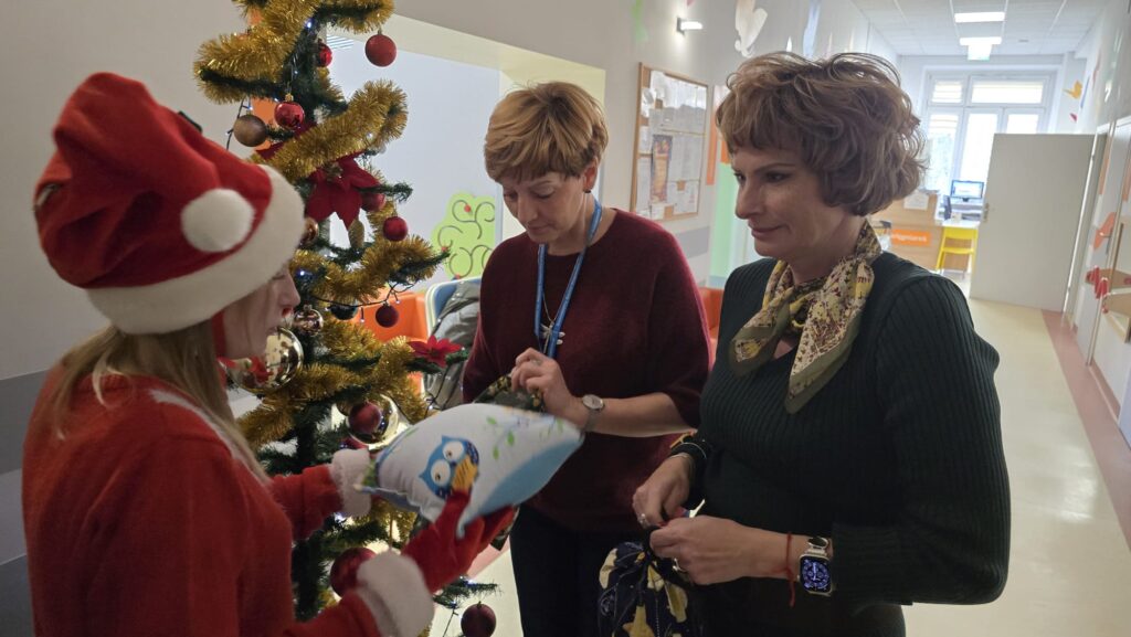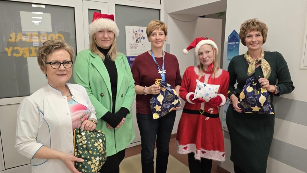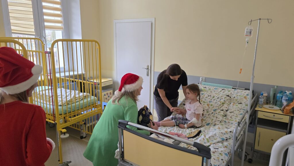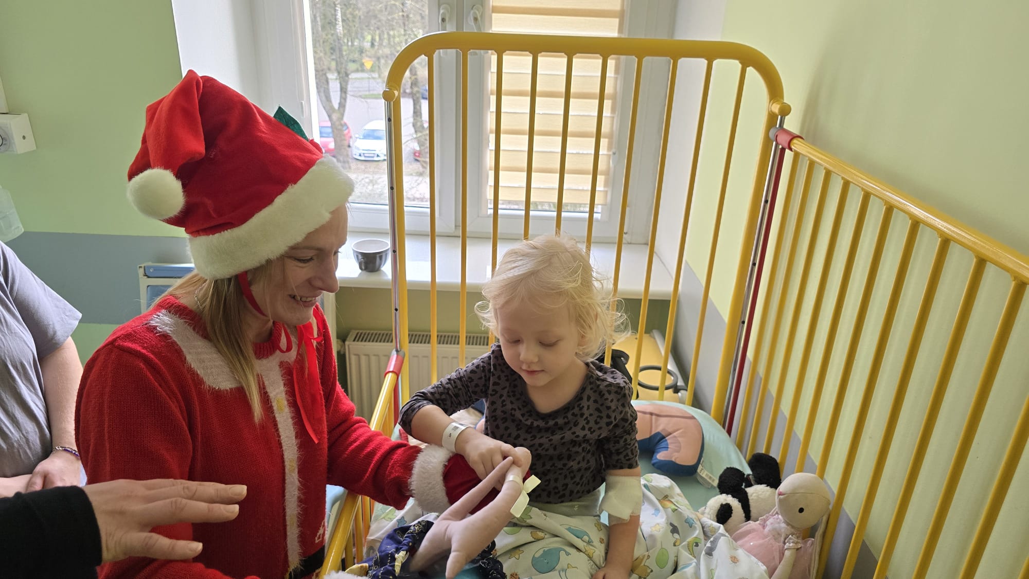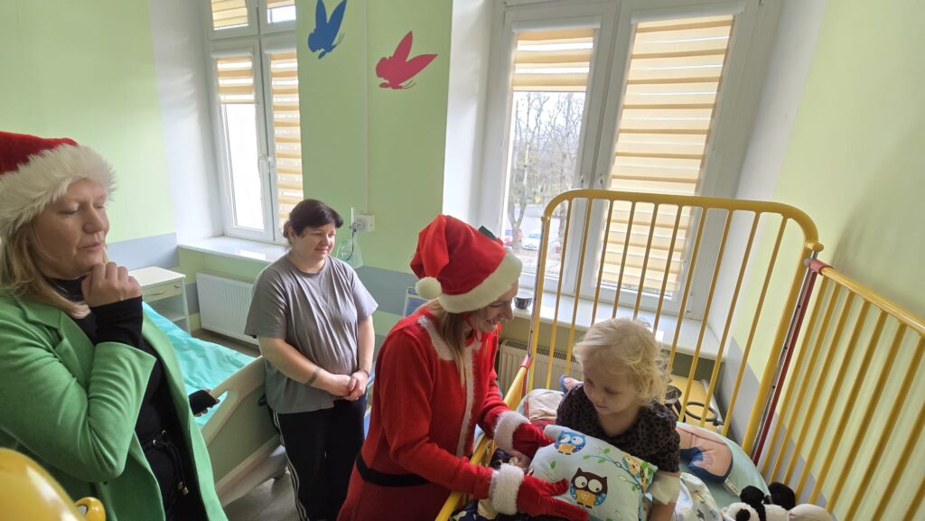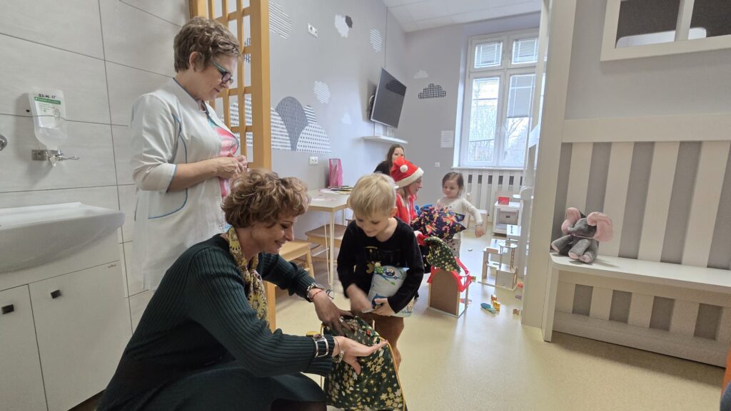Tuz przed wigilią na oddziale dziecięcym przebywało kilkanaścioro pacjentów. Rozpiętość wieku była ogromna – od kilkumiesięcznych maluszków, które dopiero poznają świat, po nastolatki. Niezależnie od wieku, na widok kolorowych prezentów i uśmiechniętych gości, na twarzach dzieci pojawiła się radość, która na chwilę pozwoliła zapomnieć o chorobie i trudach leczenia.