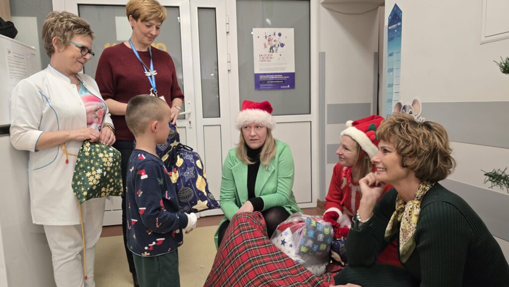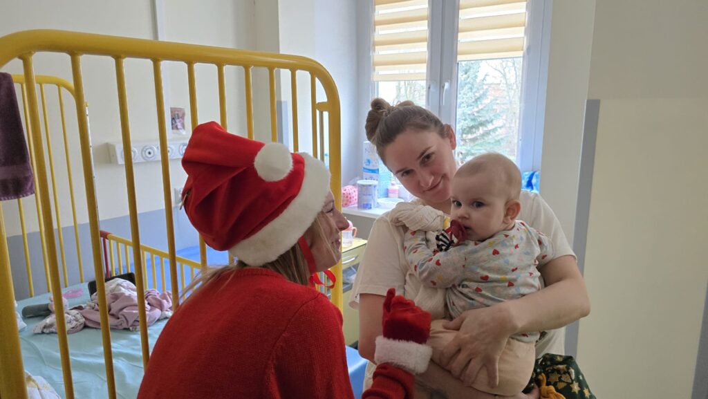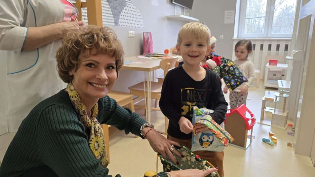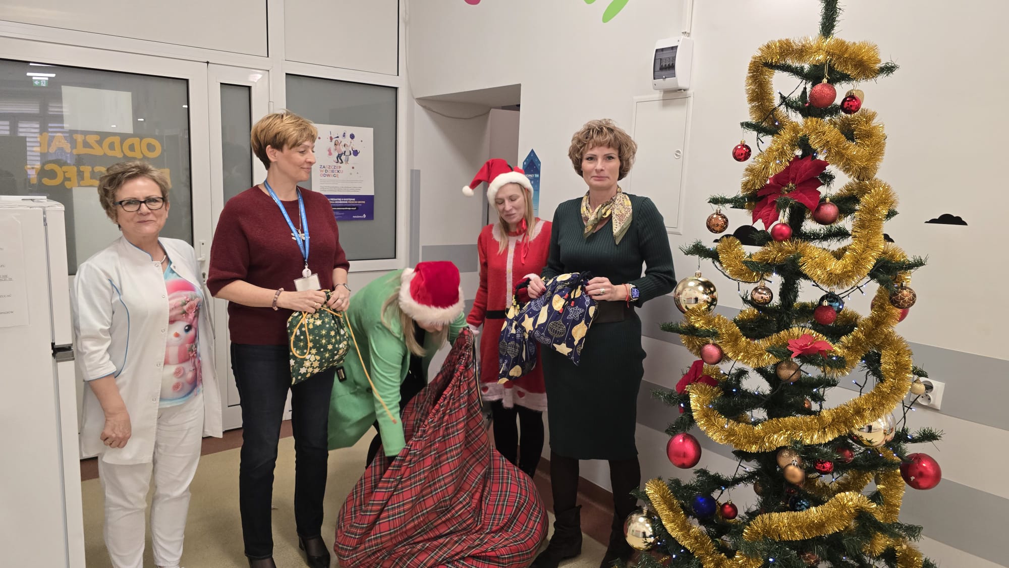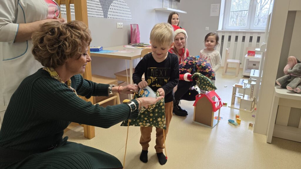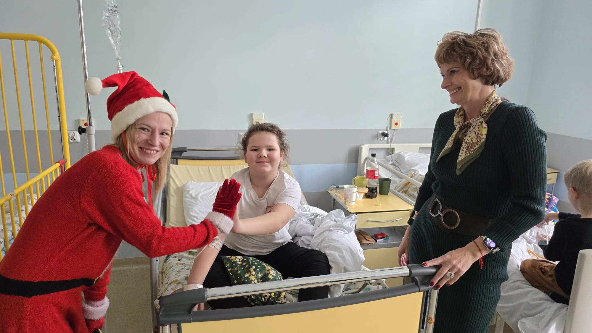 Tuz przed wigilią na oddziale dziecięcym przebywało kilkanaścioro pacjentów. Rozpiętość wieku była ogromna – od kilkumiesięcznych maluszków, które dopiero poznają świat, po nastolatki. Niezależnie od wieku, na widok kolorowych prezentów i uśmiechniętych gości, na twarzach dzieci pojawiła się radość, która na chwilę pozwoliła zapomnieć o chorobie i trudach leczenia.