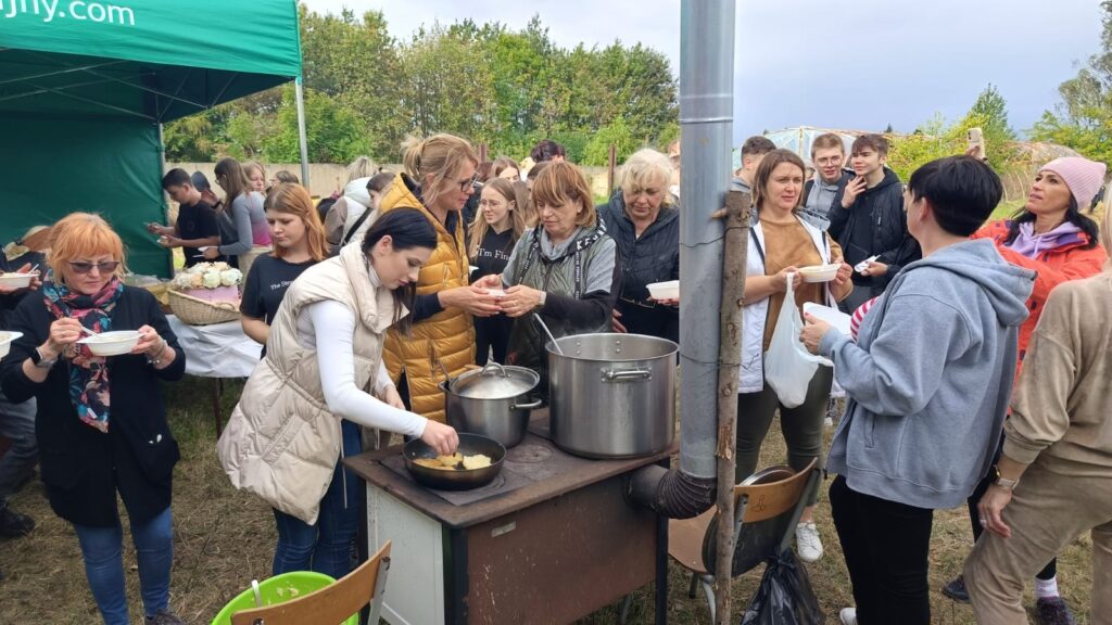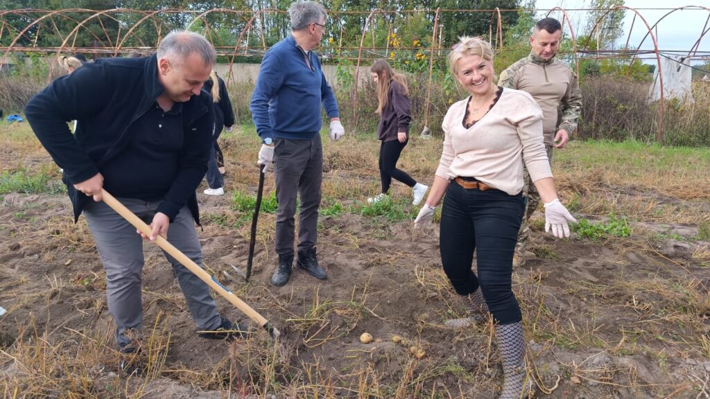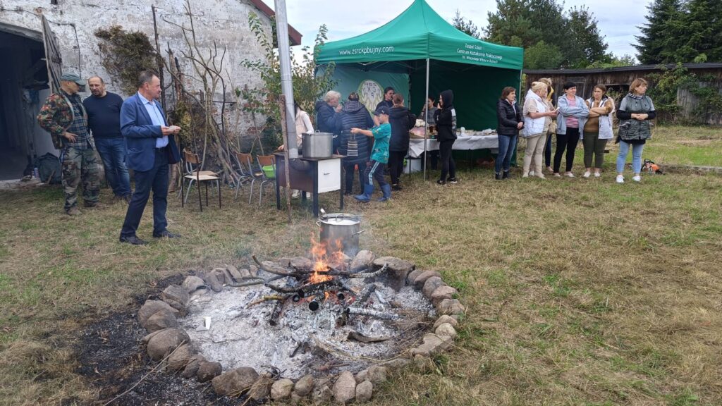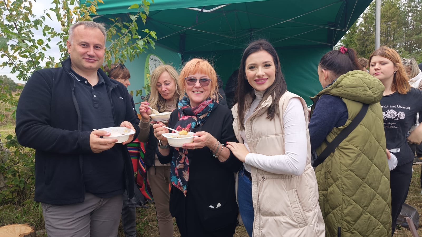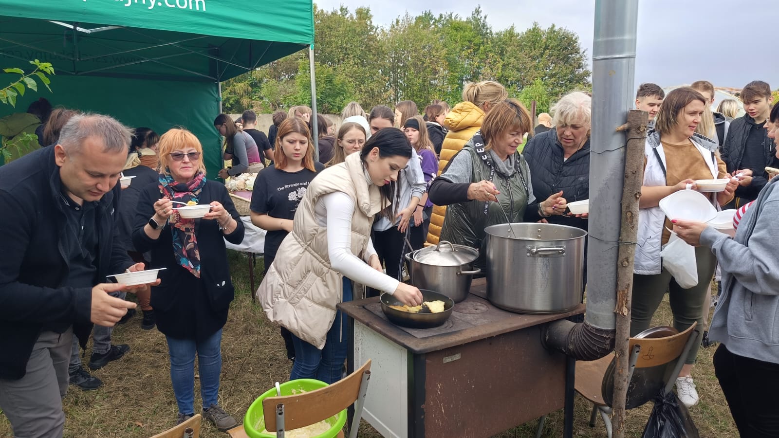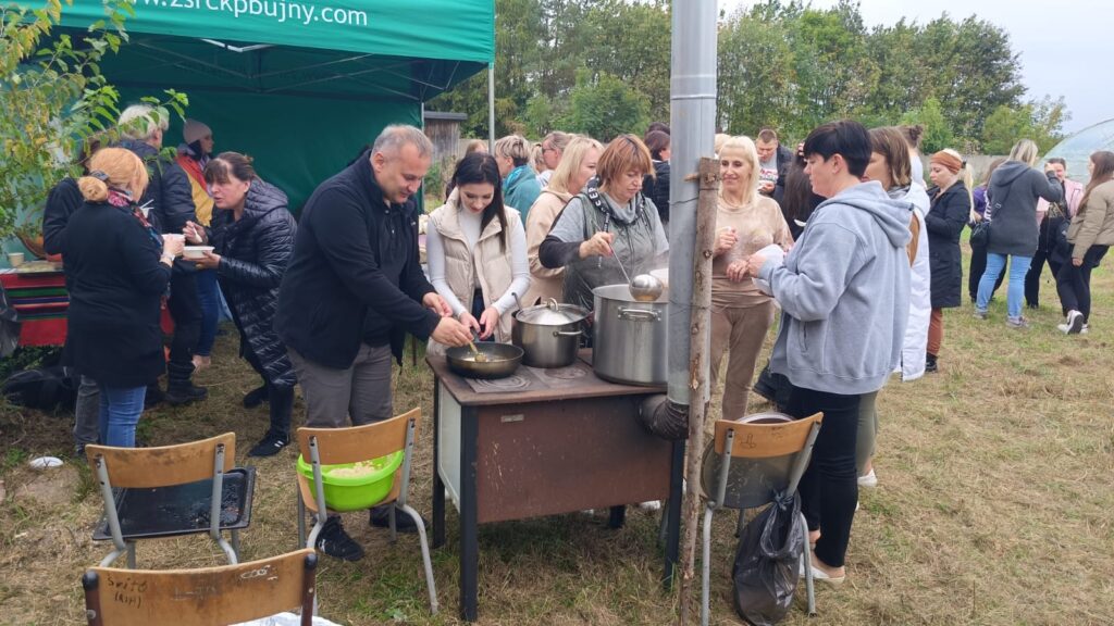 Po wykopkach nie zabrakło pysznego kapuśniaku z prazokami oraz placków ziemniaczanych dla uzupełnienia sił. – Wykopki ziemniaków, to jedno z najwspanialszych wspomnień z mojego dzieciństwa, cała rodzina i znajomi zbierali ziemniaki na polu w Rękoraju, ja także. Dziś dzięki inicjatywie naszej powiatowej szkoły w Bujnach, uczestniczyłem w takich tradycyjnych wykopkach i było super – mówił uczestniczący w wykopkach starosta piotrkowski Piotr Wojtysiak.