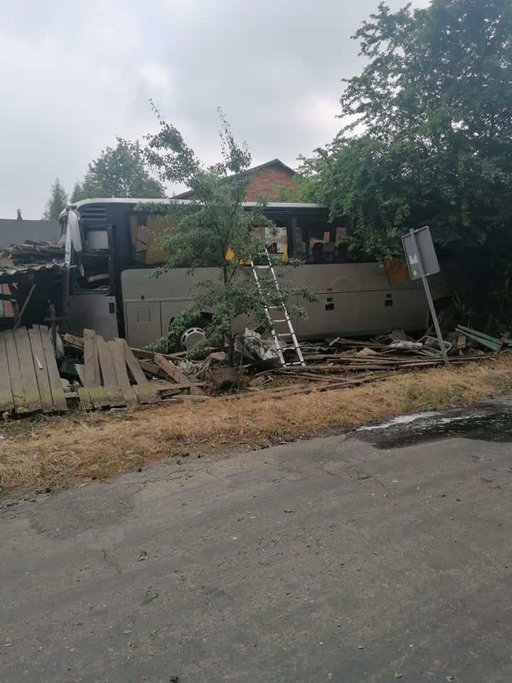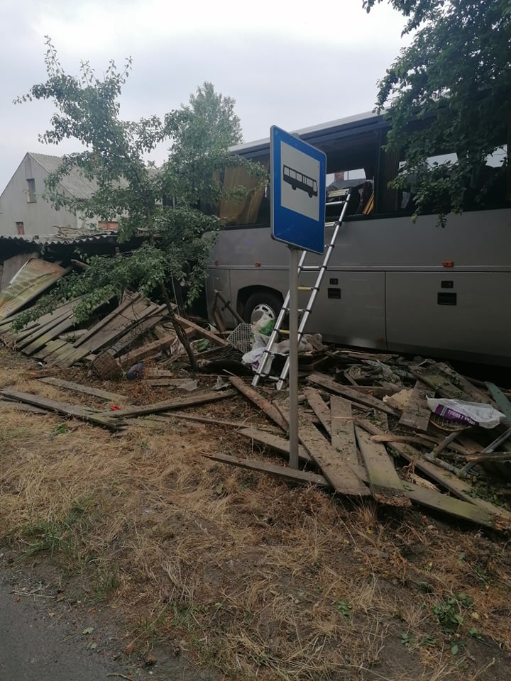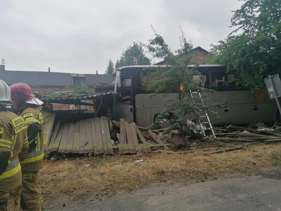 Ze wstępnych ustaleń policji wiadomo, że kierowca autokaru, z niewyjaśnionych przyczyn zjechał na prawe pobocze, uderzył w ogrodzenie a następnie w drewnianą wiatę. – informuje Dagmara Mościńska z biura rasowego KMP w Piotrkowie. – Pojazdem podróżowało około 25 osób. Po wypadku wszyscy samodzielnie opuścili rozbity autokar. Osiem osób uskarżało się na drobne dolegliwości, reszcie pasażerów nic się nie stało. W najcięższym stanie był kierowca autobusu. – dodała Dagmara Mościńska.