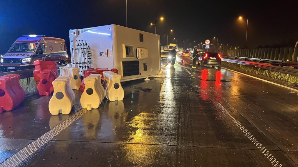 Wczoraj, około godziny 23:00, na trasie S8 w okolicach Wolborza, na pasie w kierunku Warszawy doszło do kolejnego zdarzenia drogowego na remontowanym odcinku. Kierujący samochodem kempingowym, nie dostosowując prędkości do panujących warunków, stracił panowanie nad pojazdem, w wyniku czego auto przewróciło się na bok. Na szczęście, nikt nie odniósł obrażeń, a kierowca był trzeźwy.