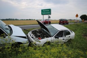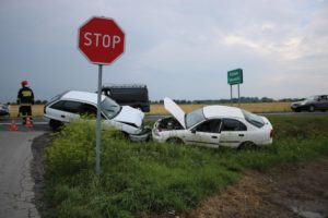 Kierująca mitsubishi, wyjeżdżając z ulicy Moryca,  nie ustąpiła pierwszeństwa nadjeżdżającemu od strony Rozprzy kierowcy opla astra, i wtedy doszło do zderzenia. Siła uderzenia była tak silna, że oba pojazdu wpadły do rowu.