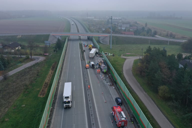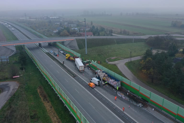 Prawdopodobnie mgła i zmęczenie było przyczyną zderzenia dwóch ciężarówki do którego doszło w czwartek nad ranem na ekspresowej „ósemce”. Wypadek miał miejsce w okolicy ulicy Witosa. Podczas kraksy z jednej z ciężarówek wypadł ładunek. To kilka palet…. alkoholu, w większości wina Martini. W wyniku zdarzenia, jedna osoba została ranna.