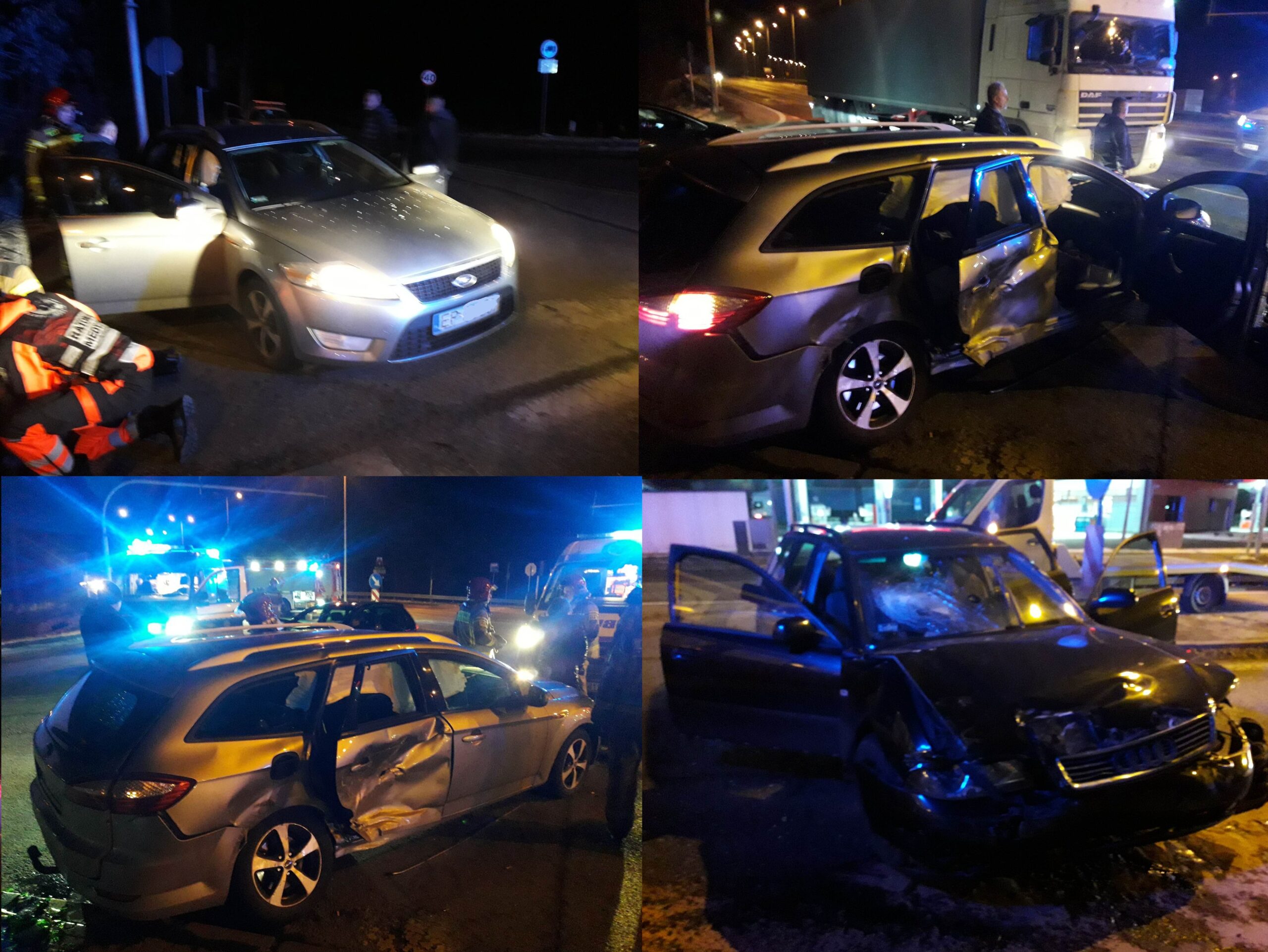 Do zderzenia forda i audi doszło w czwartek (09.02) około 21:30 na skrzyżowaniu ulic Sulejowskiej i Kleszcz w Piotrkowie. Z naszych nieoficjalnych ustaleń wynika, że w tym miejscu sygnalizacja świetlna działała w trybie pulsacyjnym. Kierujący fordem, jadąc od strony miasta, chciał skręcić w lewo w kierunku osiedla Wierzeje, doprowadził do zderzenia obu pojazdów wymuszając pierwszeństwo na kierującym audi, który prawidłowo jechał od strony Sulejowa. Pasażerka forda nie miała zapiętych pasów, dlatego po zderzeniu wyleciała z pojazdu. W wyniku wypadku, ranne zostały 3 osoby, i trafiły do szpitala. Utrudnienia w ruchu trwały około 2 godzin.