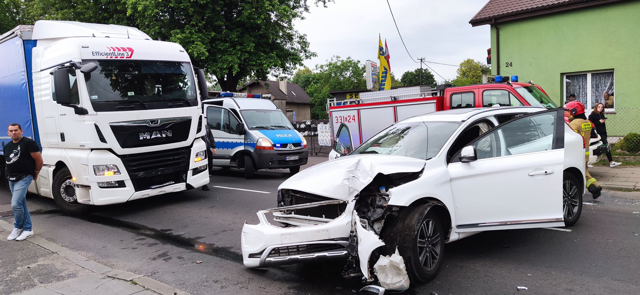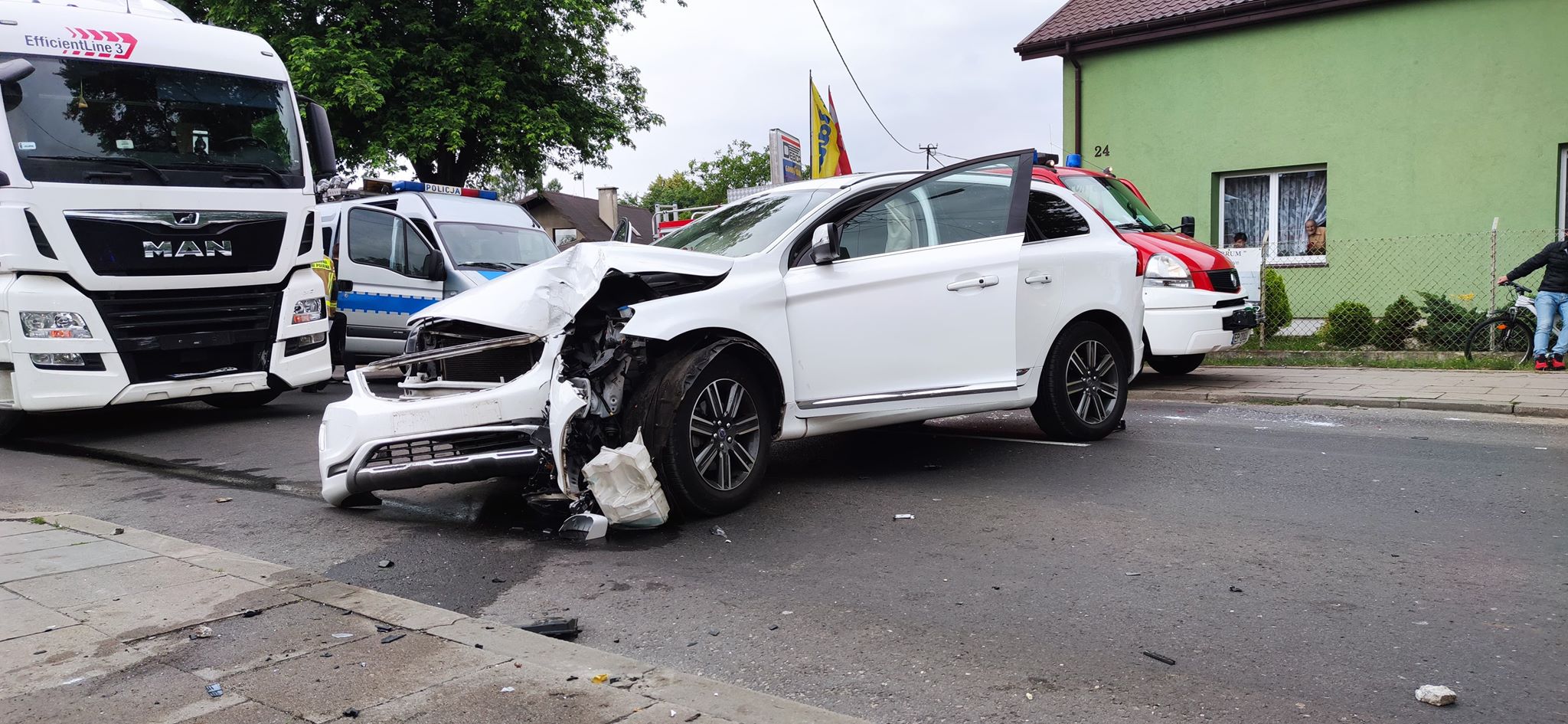 W środę przed wieczorem, z niewyjaśnionych przyczyn kierowca osobowego volvo uderzył w słup energetyczny. W wypadku brała działa także udział ciężarówka MAN. W wyniku zdarzenia, kierowca i pasażerka osobówki trafili do szpitala. W dwóch miejscach zerwana była linia energetyczna, w związku z tym mieszkańcy najbliższej okolicy, do północy pozbawieni byli zasilania energetycznego.