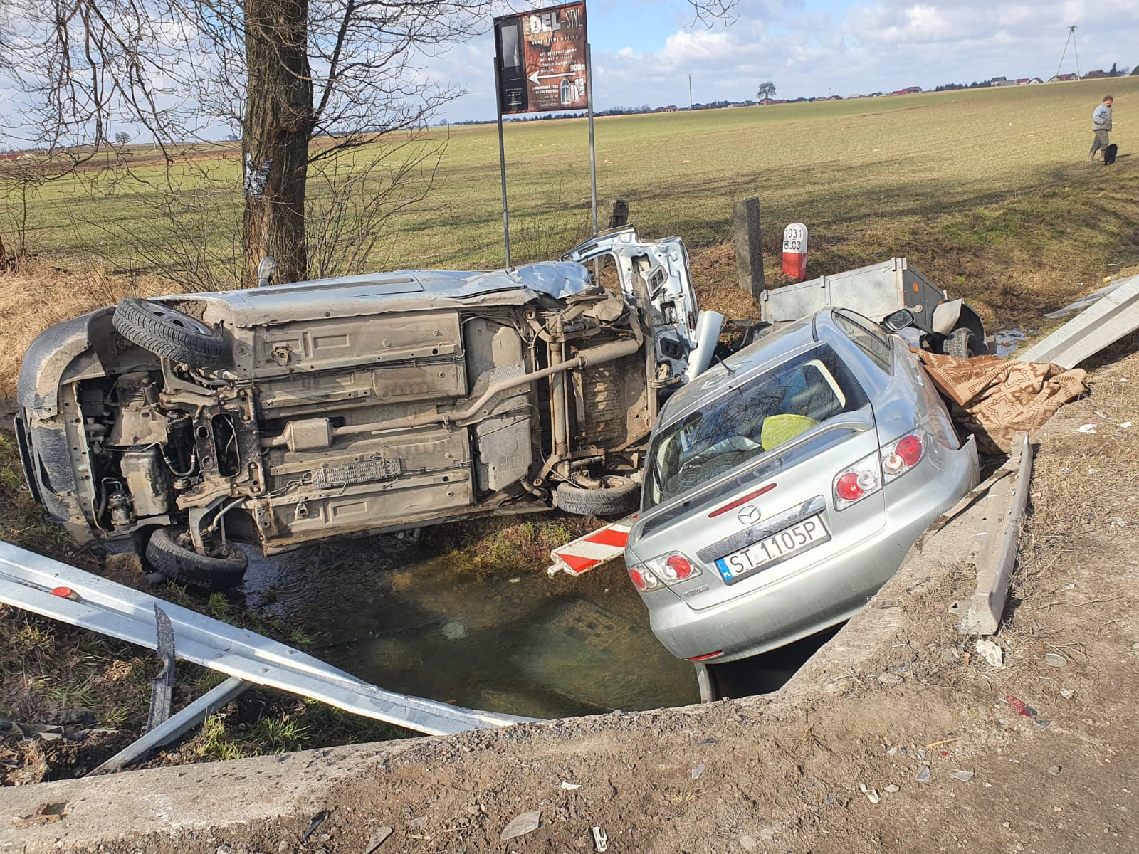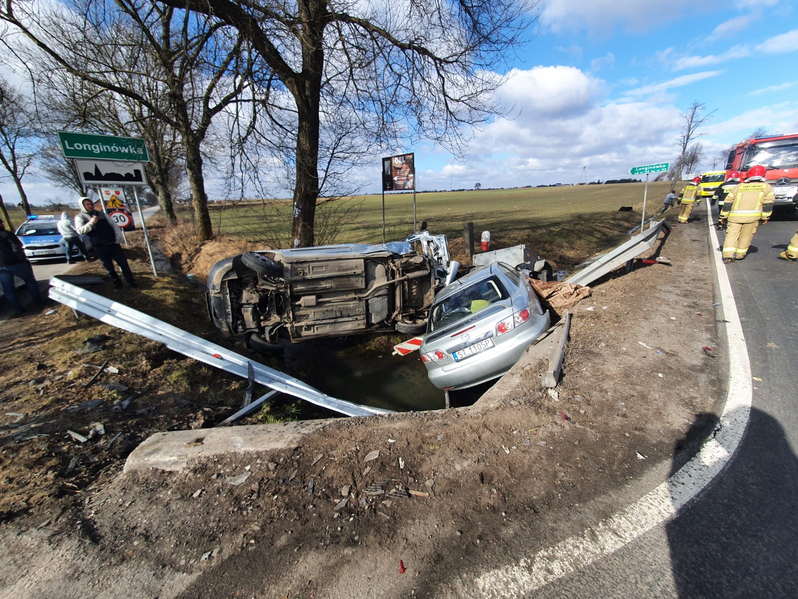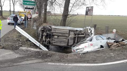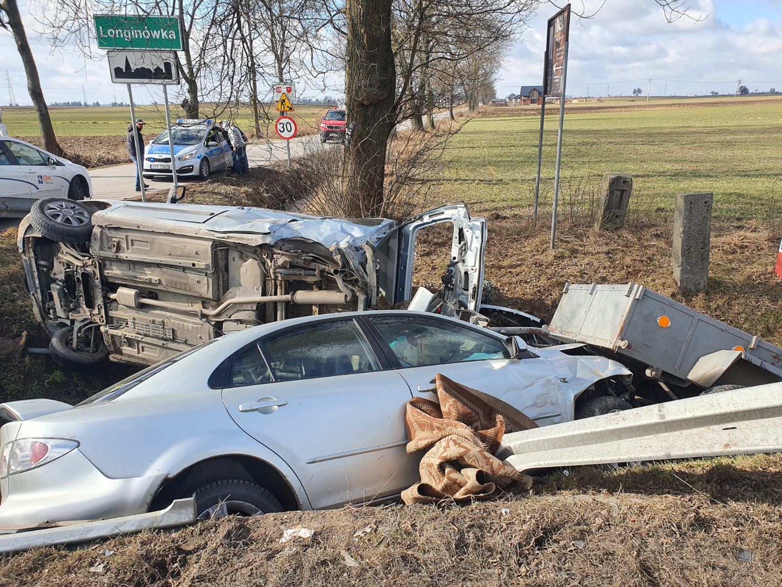 Ze wstępnych informacji policji wynika, że kierujący citroenem jechał od strony Rozprzy. Chcąc skręcić w lewo do Longinówki, zatrzymał się przed skrzyżowaniem, przepuścił wszystkich jadących od strony Piotrkowa Trybunalskiego, i wtedy z niewyjaśnionych przyczyn w tył citroena uderzyła mazda, jadąca także od strony Rozprzy. Oba pojazdy wpadły do rowu. Ranny kierowca citroena został przewieziony do szpitala.