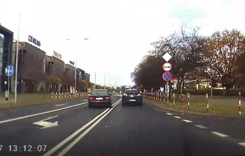 W sieci pojawiło się nagranie na którym widać, jak kierowca czarnego bmw na skrzyżowaniu Słowackiego z Kostromską, najpierw próbuje wyprzedzić pojazd na środku skrzyżowania, a następnie wykonuje ten manewr na podwójnej ciągłej.