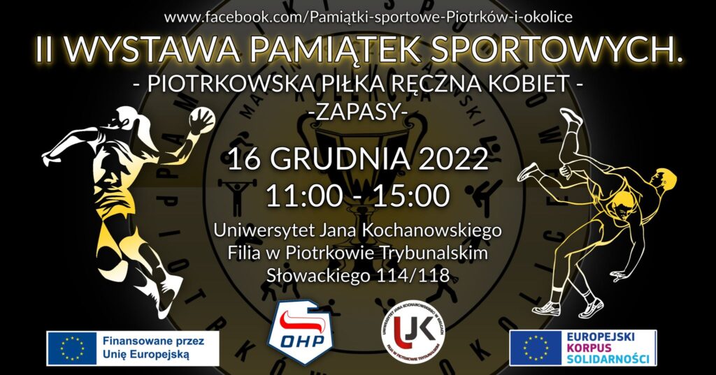 – Serdecznie zapraszam na II Wystawę Pamiątek Sportowych z Piotrkowa i okolic. Tym razem zaprezentuję pamiątki związane z piotrkowską piłka ręczną kobiet oraz piotrkowskimi zapasami. Wystawa jest częścią Projektu ”Sport twoją drogą do osobistego sukcesu” realizowanego przez grupę inicjatywną młodzieży Hufca Pracy w Piotrkowie Trybunalskim w ramach Europejskiego Korpusu Solidarności. Celem Projektu jest promocja zdrowia i zdrowego stylu życia wśród uczestników Hufca Pracy 5-2 w Piotrkowie Trybunalskim oraz społeczności lokalnej – informuje Marcin Saciński.