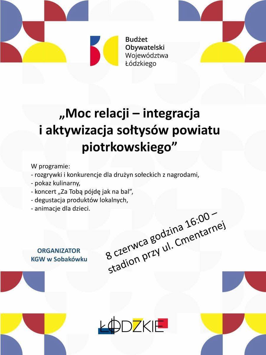 Ponadto, w niedzielę, na stadionie odbędzie się wydarzenie pn. „Moc relacji – integracja i aktywizacja sołtysów powiatu piotrkowskiego”. Organizowane przez Koło Gospodyń Wiejskich w Sobakówku, spotkanie realizowane jest w ramach Budżetu Obywatelskiego Województwa Łódzkiego na rok 2025.