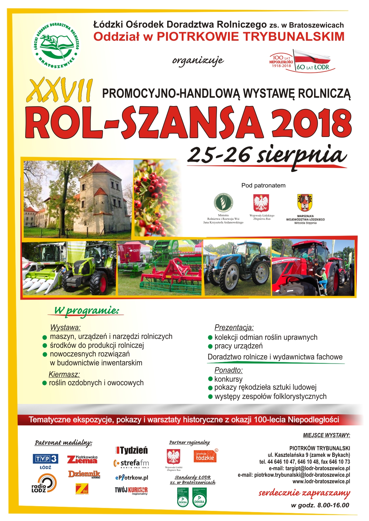 To już 27. edycja promocyjno-handlowej wystawy rolniczej „Rol-Szansa”. Na błoniach zamku w Bykach zaprezentuje się ponad 200 wystawców z branży rolniczej i ogrodniczej. Szczególnie bogata będzie oferta maszyn i urządzeń rolniczych, zwłaszcza najnowszej generacji ciągników i agregatów uprawowych, a także wyposażenia budynków inwentarskich i materiałów budowlanych.