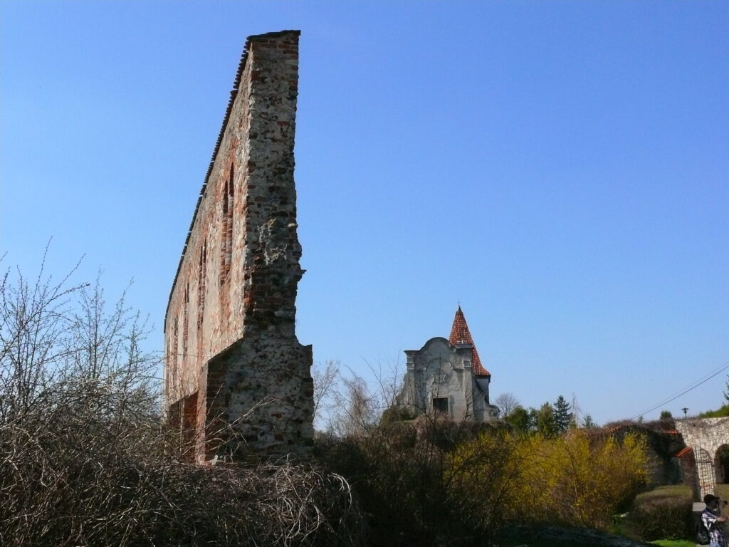 Mury cysterskiego opactwa na Podklasztorzu okazały się świetnym plenerem nie tylko dla produkcji pełnometrażowych. O ten jeden z najcenniejszych zabytków w skali kraju upomniała się także i telewizja. W 1985 roku, kiedy reżyser Marek Piestrak przystąpił do ekranizacji powieści Kazimierza Korkozowicza pod tytułem „Przyłbice i kaptury” Sulejów świetnie wpisał się w fabułę szpiegowskiej opowieści o tajnych współpracownikach polskiego króla Władysława Jagiełły, zwalczających knowania zakonu krzyżackiego. 9-odcinkowa seria jest jednym z ostatnich seriali historycznych czasów PRL-u. Przygody Czarnego, Jaksy z Wolborza i Dziewczki, poszukujących między innymi porwanej siostrzenicy królewskiego sekretarza, rozgrywają się na terenach należących do Zakonu Krzyżackiego w okresie poprzedzającym Bitwę pod Grunwaldem. Ruiny południowego skrzydła Opactwa Cystersów na Podklasztorzu są jednym z plenerów finałowego odcinka serii, zatytułowanego „Jutro bitwa” – to tutaj niejaki Kostur na zlecenie Vogelwedera usiłuje porwać Czarnego. Serial cieszył się sympatią publiczności z uwagi na klimat, jak i doborową obsadę. W postać Czarnego wcielił się Roch Siemianowski, Jaksę zagrał Marek Frąckowiak, zaś siłacza „Dziewczkę” nie kto inny, jak sam Władysław Komar. W króla Jagiełłę, podobnie jak u Aleksandra Forda w ekranizacji „Krzyżaków”, wcielił się Emil Karewicz.
