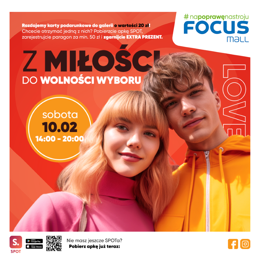 Wiele sklepów w Focus Mall przygotowało specjalne walentynkowe oferty i propozycje podarunków. Warto też pomyśleć o wspólnym spędzeniu czasu przy kawie i ciastku lub wybrać się razem do kina.