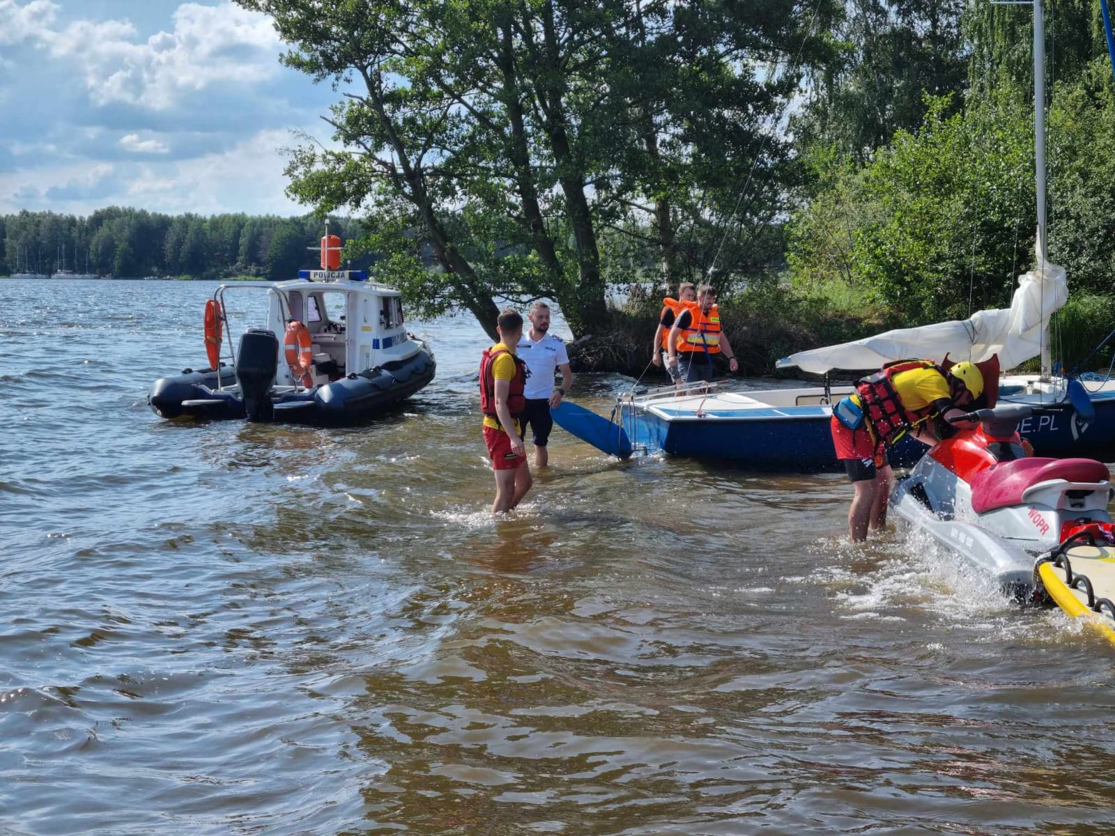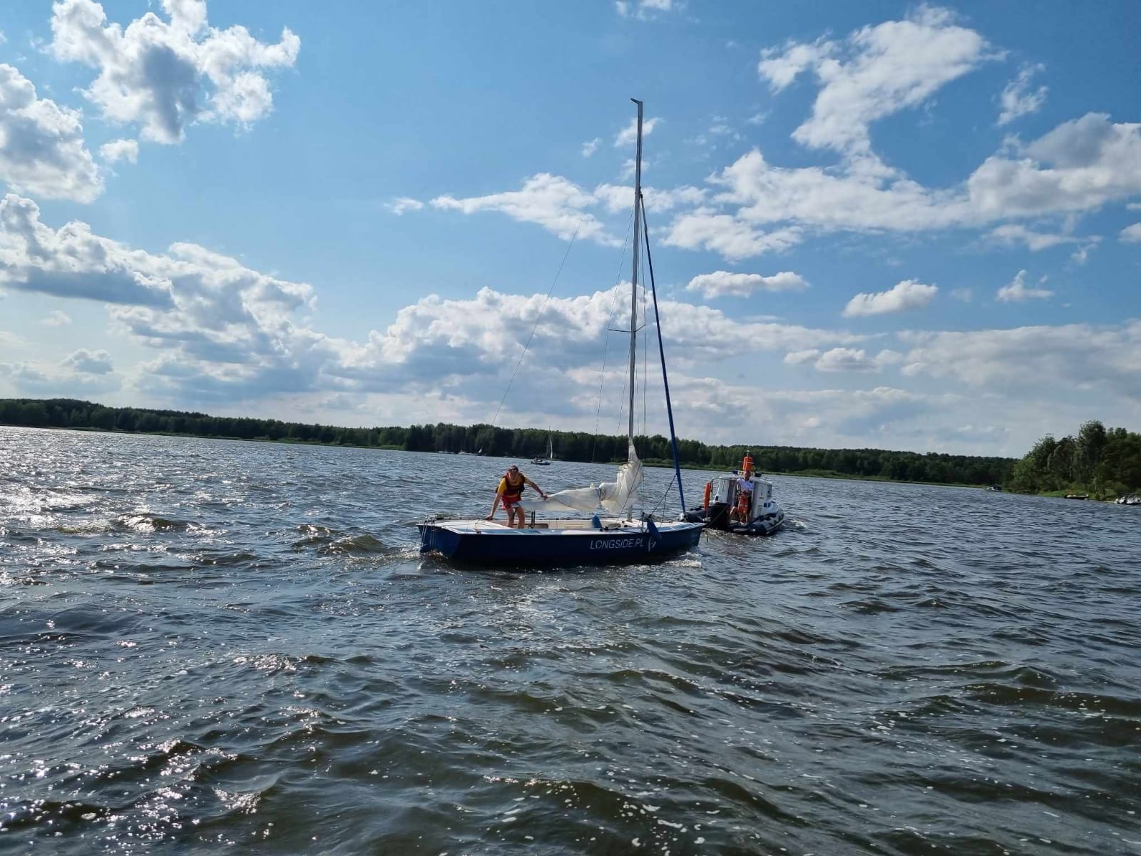 Policjanci pełniący służbę w Posterunku Policji w Barkowicach Mokrych otrzymali zgłoszenie o przewróceniu się żaglówki. Szybkie działanie funkcjonariuszy oraz strażaków ochotników z Zarzęcina pozwoliło na wyciągnięcie z wody dwójki podróżujących. Do akcji dołączyli również wodniacy z Tomaszowa Mazowieckiego. Dzięki wspólnym działaniom poszkodowani nie odnieśli żadnych obrażeń a jacht zacumował w porcie.