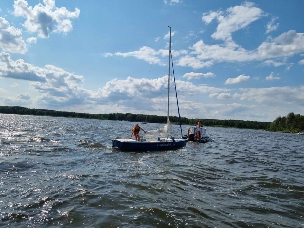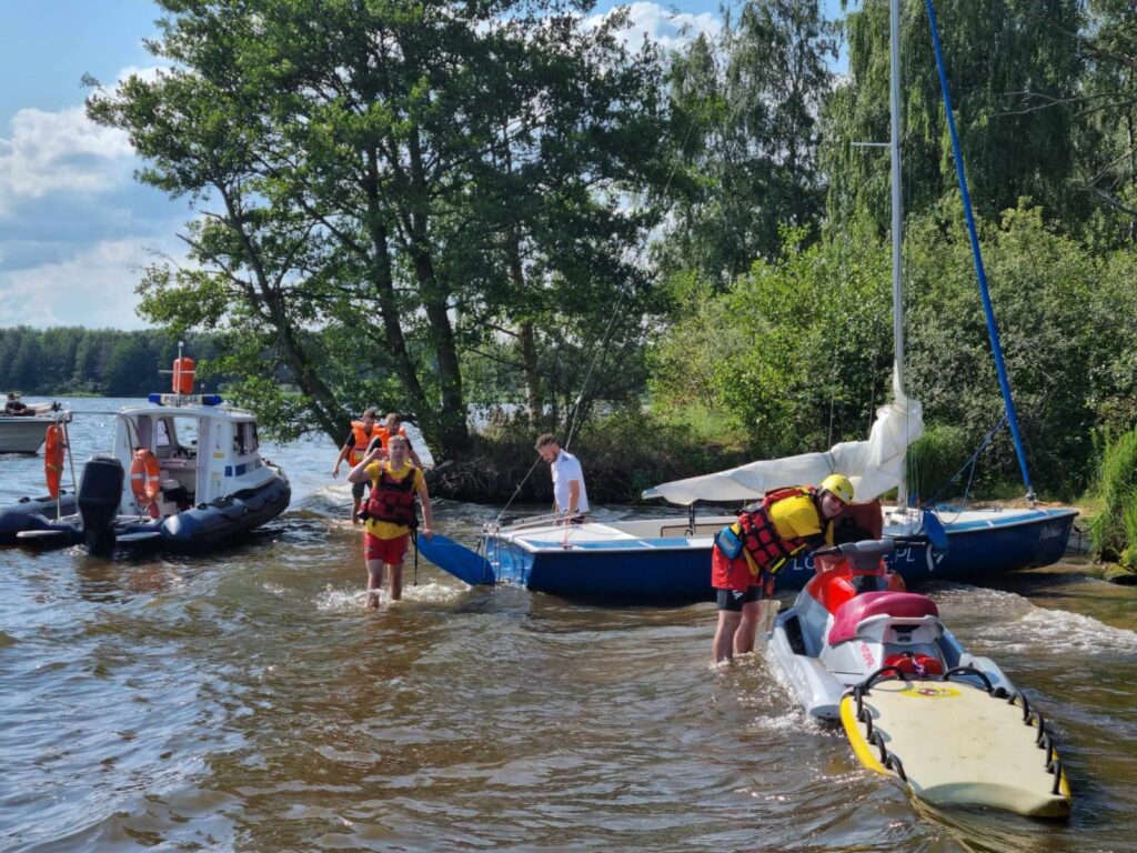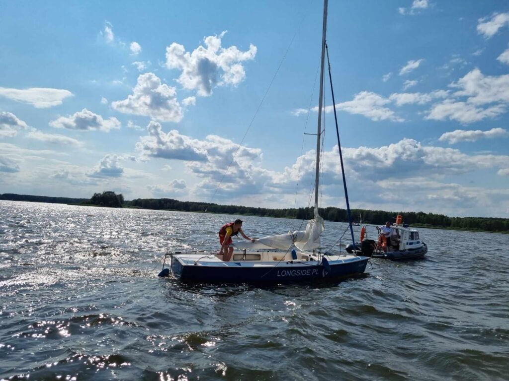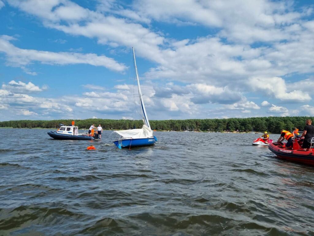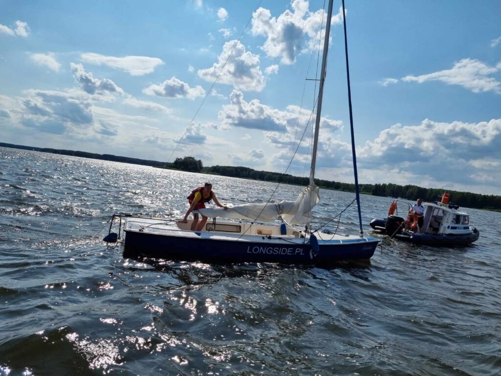 22 lipca 2023 roku po godzinie 15:00 piotrkowscy wodniacy, na co dzień pełniący służbę w Posterunku Policji w Barkowicach Mokrych otrzymali zgłoszenie, że na Zalewie Sulejowskim, na wysokości miejscowości Zarzęcin doszło do przewrócenia jachtu żaglowego. – Mundurowi od razu ruszyli na ratunek. Dopływając na miejsce zauważyli przewrócony jacht, obok którego w wodzie dryfowały dwie osoby. Wspólnie ze strażakami ochotnikami z Zarzęcina od razu podjęli akcję ratunkową, aby jak najszybciej wydobyć je z wody. Po zapewnieniu bezpieczeństwa podróżującym oraz zapewnieniu im komfortu termicznego mundurowi rozpoczęli podnoszenie przewróconej łodzi. Po chwili na miejsce dopłynęły również dwa patrole wodniaków z Tomaszowa Mazowieckiego, którzy włączyli się do akcji. Dzięki wspólnym działaniom, już chwilę po zdarzeniu jacht wraz z załogą bezpiecznie przemieszczono do portu. W rozmowie ze sternikiem policjanci ustalili, że przyczyną wywrócenia się łódki były silne podmuchy wiatru. Mężczyzna był trzeźwy, a dzięki szybkiej reakcji służb oraz posiadanym przez załogę środków bezpieczeństwa nikt nie odniósł obrażeń – relacjonuje asp. sztab. Izabela Gajewska z KMP w Piotrkowie,