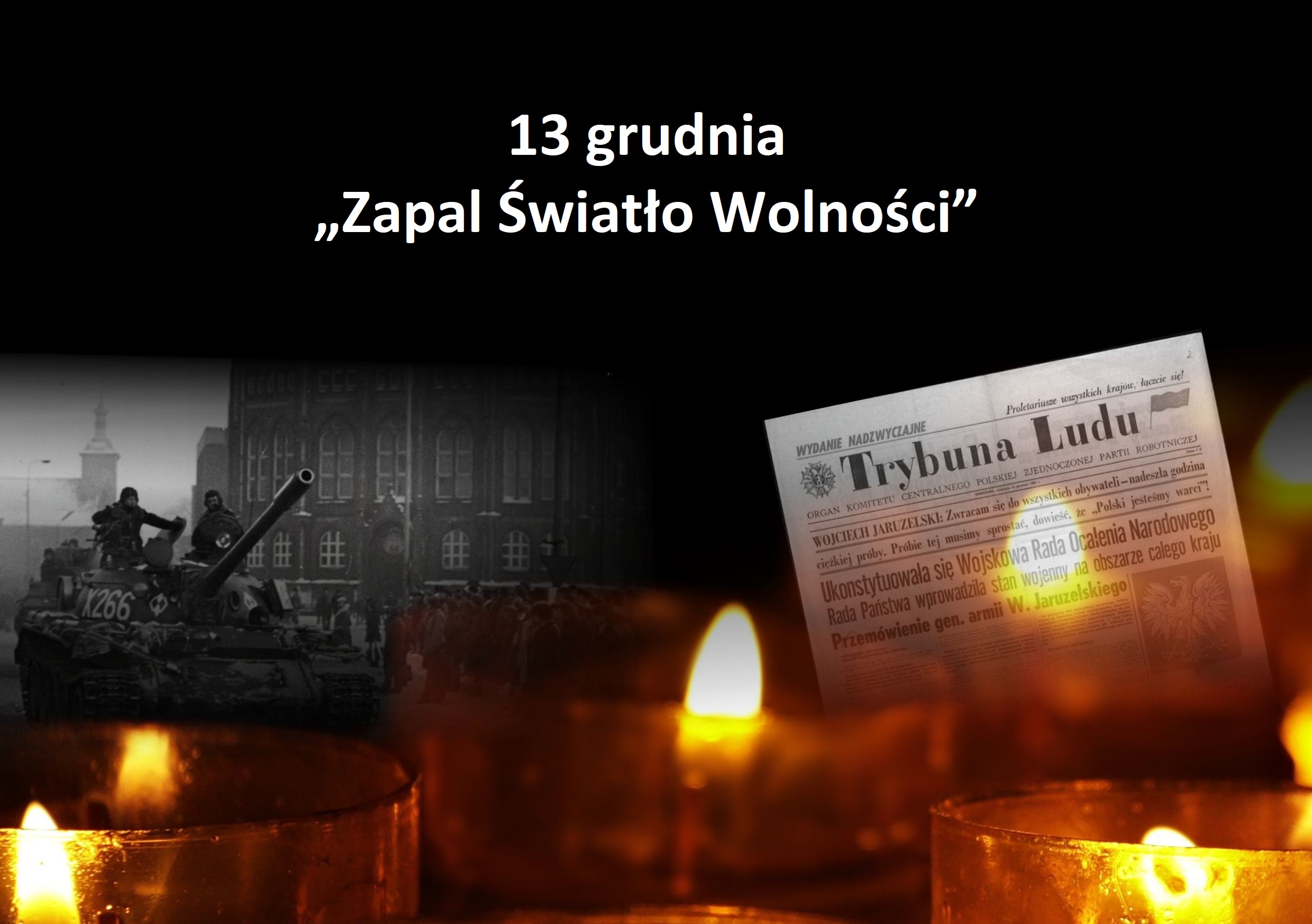 13 grudnia o godz. 19.30 IPN zachęca wszystkich do udziału w akcji „Zapal Światło Wolności” . W akcji może wziąć udział każdy, zapalając świeczkę w oknie lub wirtualnie na stronie swiatlowolnosci.ipn.gov.pl.
