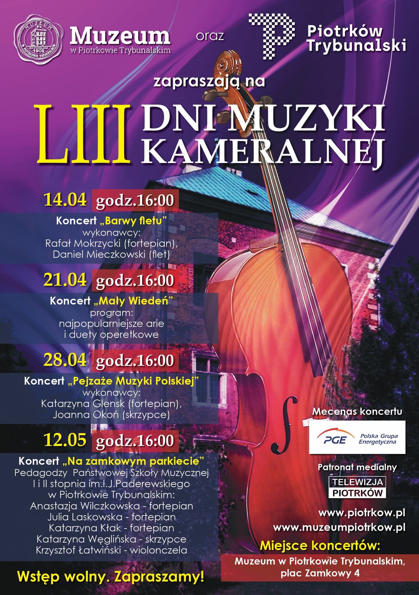 Piotrkowskie Muzeum zaprasza na cykl koncertów w ramach LIII Dni Muzyki Kameralnej. Pierwszy koncert już w najbliższą niedzielę (14.04) w Zamku Królewskim.