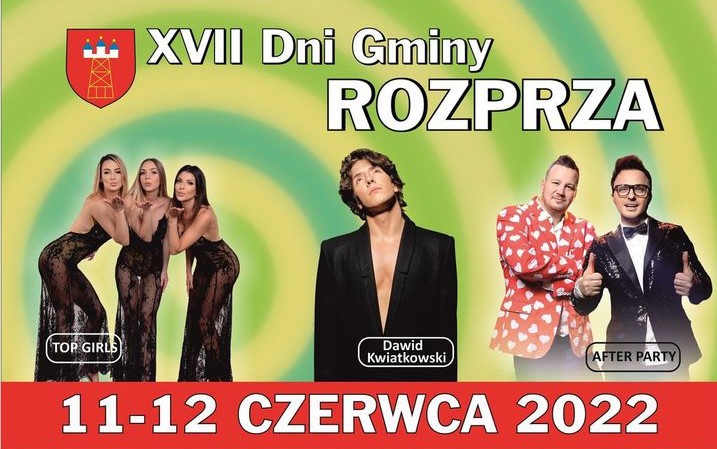 Dawid Kwiatkowski, Top Girls i After Party – to gwiazdy tegorocznych Dni Rozprzy. Ponadto na scenie zobaczymy Kapelę Fakiry oraz zespół Kasztelania Swing&Band. Szczegóły na plakacie.
